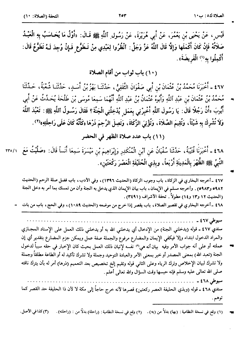 بَاب عَدَدِ صَلَاةِ الظُّهْرِ فِي الْحَضَرِ 468 - أَخْبَرَنَا قُتَيْبَةُ قَالَ حَدَّثَنَا سُفْيَانُ عَنْ ابْنِ الْمُنْكَدِرِ وَإِبْرَاهِيمَ بْنِ مَيْسَرَةَ سَمِعَا أَنَسًا قَالَ صَلَّيْتُ مَعَ النَّبِيِّ صَلَّى اللَّهُ عَلَيْهِ وَسَلَّمَ الظُّهْرَ بِالْمَدِينَةِ أَرْبَعًا وَبِذِي الْحُلَيْفَةِ الْعَصْرَ رَكْعَتَيْنِ