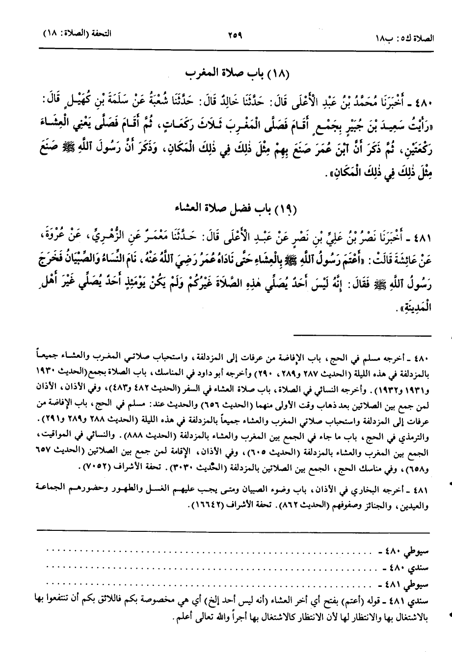 بَاب صَلَاةِ الْمَغْرِبِ 480 - أَخْبَرَنَا مُحَمَّدُ بْنُ عَبْدِ الْأَعْلَى قَالَ حَدَّثَنَا خَالِدٌ قَالَ حَدَّثَنَا شُعْبَةُ عَنْ سَلَمَةَ بْنِ كُهَيْلٍ قَالَ رَأَيْتُ سَعِيدَ بْنَ جُبَيْرٍ بِجَمْعٍ أَقَامَ فَصَلَّى الْمَغْرِبَ ثَلَاثَ رَكَعَاتٍ ثُمَّ أَقَامَ فَصَلَّى يَعْنِي الْعِشَاءَ رَكْعَتَيْنِ ثُمَّ ذَكَرَ أَنَّ ابْنَ عُمَرَ صَنَعَ بِهِمْ مِثْلَ ذَلِكَ فِي ذَلِكَ الْمَكَانِ وَذَكَرَ أَنَّ رَسُولَ اللَّهِ صَلَّى اللَّهُ عَلَيْهِ وَسَلَّمَ صَنَعَ مِثْلَ ذَلِكَ فِي ذَلِكَ الْمَكَانِ