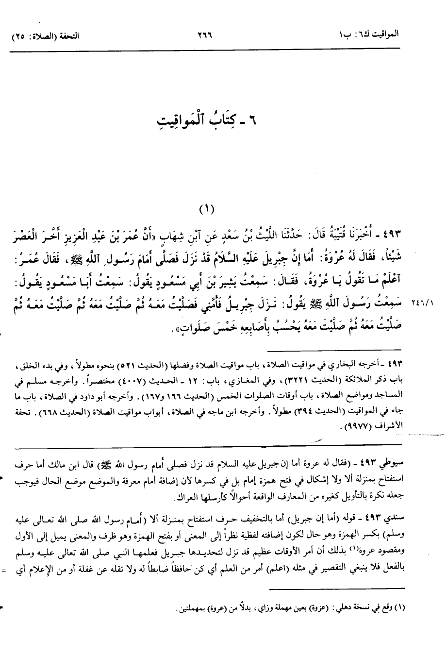 493 - أَخْبَرَنَا قُتَيْبَةُ قَالَ حَدَّثَنَا اللَّيْثُ بْنُ سَعْدٍ عَنْ ابْنِ شِهَابٍ أَنَّ عُمَرَ بْنَ عَبْدِ الْعَزِيزِ أَخَّرَ الْعَصْرَ شَيْئًا فَقَالَ لَهُ عُرْوَةُ أَمَا إِنَّ جِبْرِيلَ عَلَيْهِ السَّلَام قَدْ نَزَلَ فَصَلَّى إِمَامَ رَسُولِ اللَّهِ صَلَّى اللَّهُ عَلَيْهِ وَسَلَّمَ فَقَالَ عُمَرُ اعْلَمْ مَا تَقُولُ يَا عُرْوَةُ فَقَالَ سَمِعْتُ بَشِيرَ بْنَ أَبِي مَسْعُودٍ يَقُولُ سَمِعْتُ أَبَا مَسْعُودٍ يَقُولُ سَمِعْتُ رَسُولَ اللَّهِ صَلَّى اللَّهُ عَلَيْهِ وَسَلَّمَ يَقُولُ نَزَلَ جِبْرِيلُ فَأَمَّنِي فَصَلَّيْتُ مَعَهُ ثُمَّ صَلَّيْتُ مَعَهُ ثُمَّ صَلَّيْتُ مَعَهُ ثُمَّ صَلَّيْتُ مَعَهُ ثُمَّ صَلَّيْتُ مَعَهُ يَحْسُبُ بِأَصَابِعِهِ خَمْسَ صَلَوَاتٍ