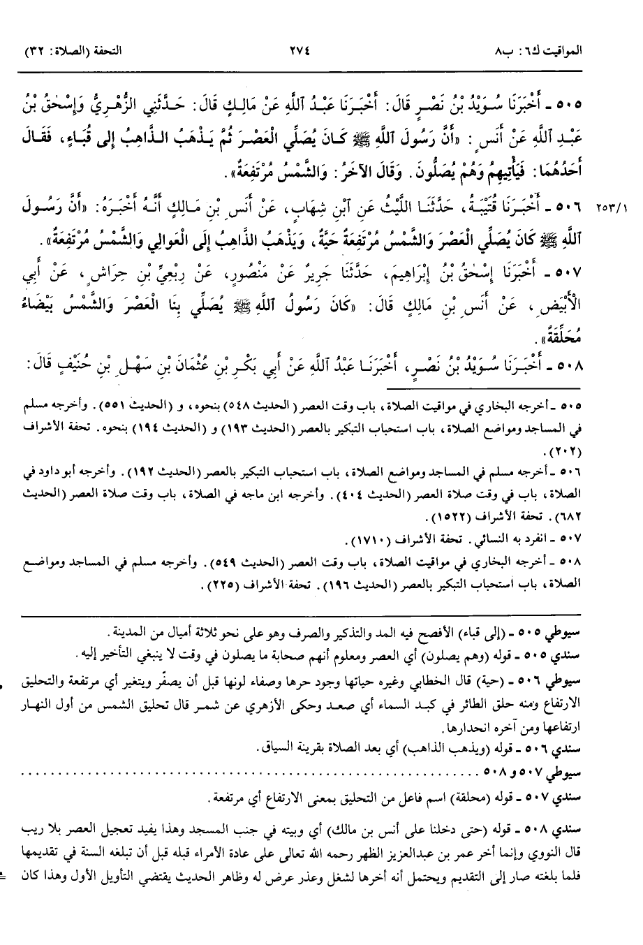506 - أَخْبَرَنَا قُتَيْبَةُ قَالَ حَدَّثَنَا اللَّيْثُ عَنْ ابْنِ شِهَابٍ عَنْ أَنَسِ بْنِ مَالِكٍ أَنَّهُ أَخْبَرَهُ أَنَّ رَسُولَ اللَّهِ صَلَّى اللَّهُ عَلَيْهِ وَسَلَّمَ كَانَ يُصَلِّي الْعَصْرَ وَالشَّمْسُ مُرْتَفِعَةٌ حَيَّةٌ وَيَذْهَبُ الذَّاهِبُ إِلَى الْعَوَالِي وَالشَّمْسُ مُرْتَفِعَةٌ