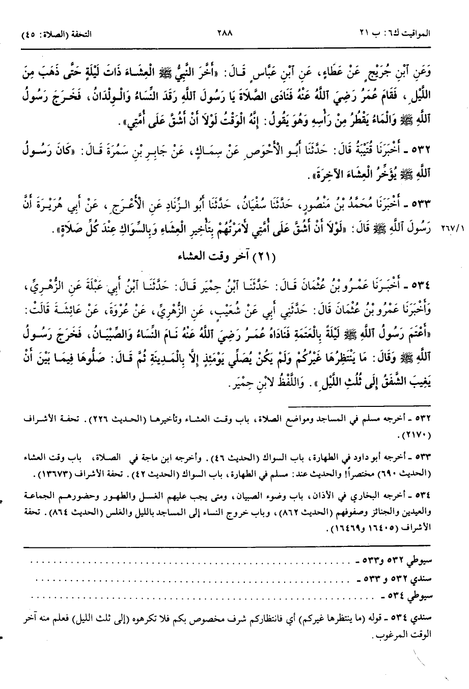 533 - أَخْبَرَنَا مُحَمَّدُ بْنُ مَنْصُورٍ قَالَ حَدَّثَنَا سُفْيَانُ قَالَ حَدَّثَنَا أَبُو الزِّنَادِ عَنْ الْأَعْرَجِ عَنْ أَبِي هُرَيْرَةَ أَنَّ رَسُولَ اللَّهِ صَلَّى اللَّهُ عَلَيْهِ وَسَلَّمَ قَالَ لَوْلَا أَنْ أَشُقَّ عَلَى أُمَّتِي لَأَمَرْتُهُمْ بِتَأْخِيرِ الْعِشَاءِ عِنْدَ كُلِّ صَلَاةٍ