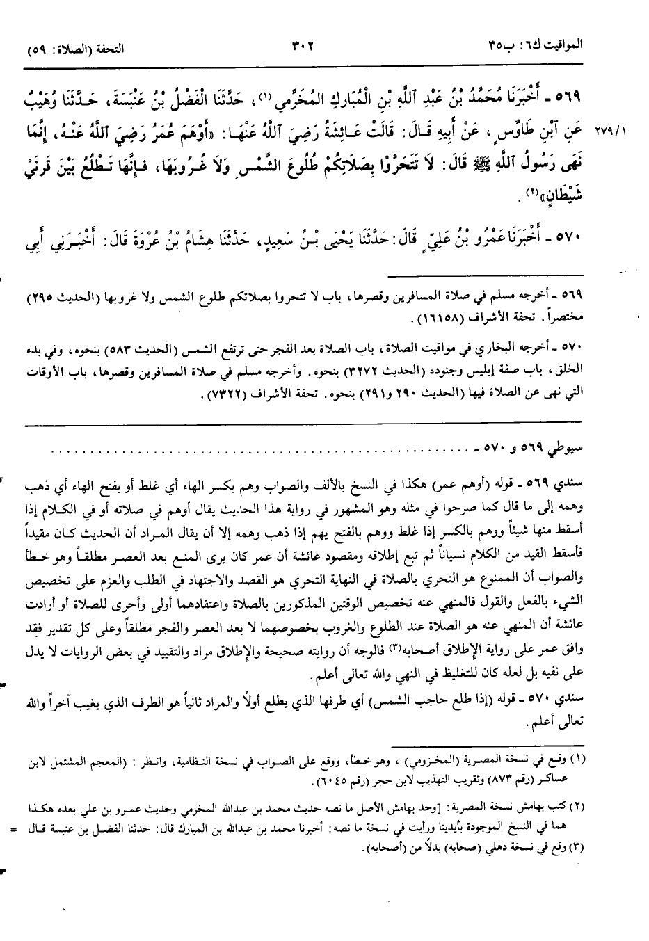 569 - أَخْبَرَنَا مُحَمَّدُ بْنُ عَبْدِ اللَّهِ بْنِ الْمُبَارَكِ الْمُخَرِّمِيُّ قَالَ حَدَّثَنَا الْفَضْلُ بْنُ عَنْبَسَةَ قَالَ حَدَّثَنَا وُهَيْبٌ عَنْ ابْنِ طَاوُسٍ عَنْ أَبِيهِ قَالَ قَالَتْ عَائِشَةُ رَضِيَ اللَّهُ عَنْهَا أَوْهَمَ عُمَرُ رَضِيَ اللَّهُ عَنْهُ إِنَّمَا نَهَى رَسُولُ اللَّهِ صَلَّى اللَّهُ عَلَيْهِ وَسَلَّمَ قَالَ لَا تَتَحَرَّوْا بِصَلَاتِكُمْ طُلُوعَ الشَّمْسِ وَلَا غُرُوبَهَا فَإِنَّهَا تَطْلُعُ بَيْنَ قَرْنَيْ شَيْطَانٍ