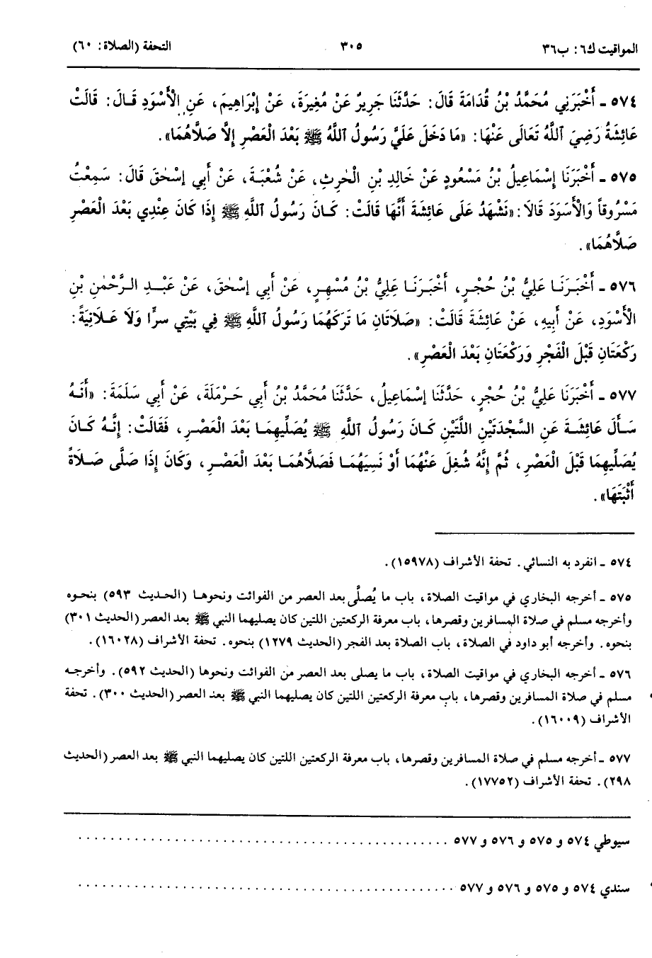 574 - أَخْبَرَنِي مُحَمَّدُ بْنُ قُدَامَةَ قَالَ حَدَّثَنَا جَرِيرٌ عَنْ مُغِيرَةَ عَنْ إِبْرَاهِيمَ عَنْ الْأَسْوَدِ قَالَ قَالَتْ عَائِشَةُ رَضِيَ اللَّهُ عَنْهَا مَا دَخَلَ عَلَيَّ رَسُولُ اللَّهِ صَلَّى اللَّهُ عَلَيْهِ وَسَلَّمَ بَعْدَ الْعَصْرِ إِلَّا صَلَّاهُمَا