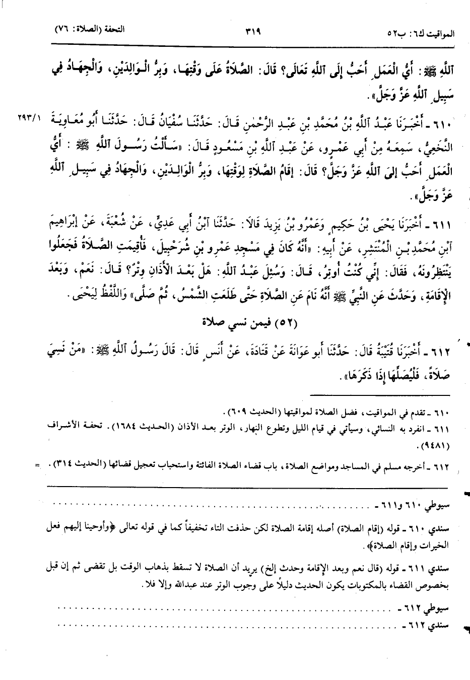 610 - أَخْبَرَنَا عَبْدُ اللَّهِ بْنُ مُحَمَّدِ بْنِ عَبْدِ الرَّحْمَنِ قَالَ حَدَّثَنَا سُفْيَانُ قَالَ حَدَّثَنَا أَبُو مُعَاوِيَةَ النَّخَعِيُّ سَمِعَهُ مِنْ أَبِي عَمْرٍو عَنْ عَبْدِ اللَّهِ بْنِ مَسْعُودٍ قَالَ سَأَلْتُ رَسُولَ اللَّهِ صَلَّى اللَّهُ عَلَيْهِ وَسَلَّمَ أَيُّ الْعَمَلِ أَحَبُّ إِلَى اللَّهِ عَزَّ وَجَلَّ قَالَ إِقَامُ الصَّلَاةِ لِوَقْتِهَا