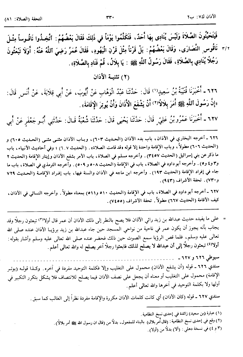 تَثْنِيَةُ الْأَذَانِ 626 - أَخْبَرَنَا قُتَيْبَةُ بْنُ سَعِيدٍ قَالَ حَدَّثَنَا عَبْدُ الْوَهَّابِ عَنْ أَيُّوبَ عَنْ أَبِي قِلَابَةَ عَنْ أَنَسٍ قَالَ إِنَّ رَسُولَ اللَّهِ صَلَّى اللَّهُ عَلَيْهِ وَسَلَّمَ أَمَرَ بِلَالًا أَنْ يَشْفَعَ الْأَذَانَ وَأَنْ يُوتِرَ الْإِقَامَةَ