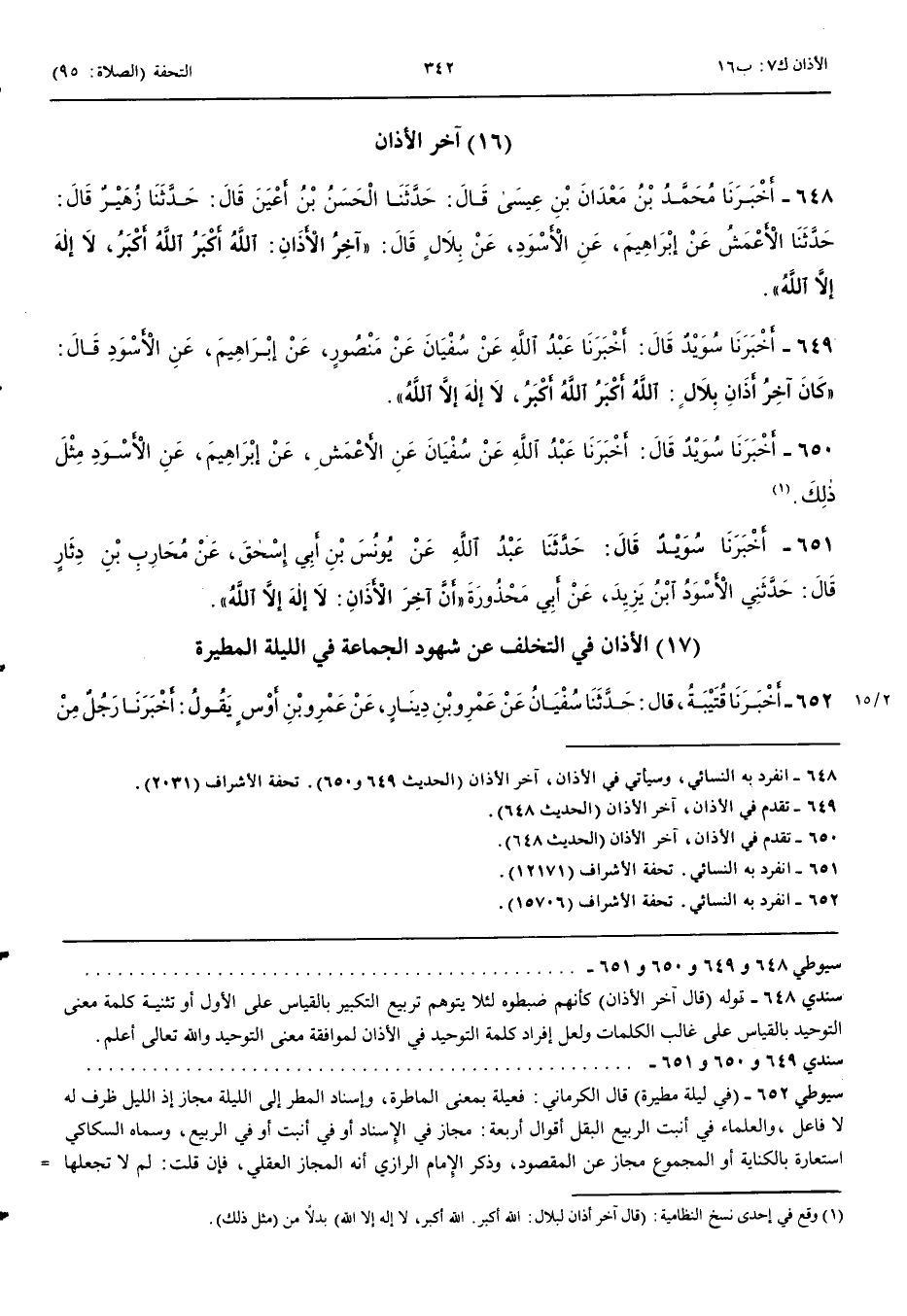 649 - أَخْبَرَنَا سُوَيْدٌ قَالَ أَنْبَأَنَا عَبْدُ اللَّهِ عَنْ سُفْيَانَ عَنْ مَنْصُورٍ عَنْ إِبْرَاهِيمَ عَنْ الْأَسْوَدِ قَالَ كَانَ آخِرُ أَذَانِ بِلَالٍ اللَّهُ أَكْبَرُ اللَّهُ أَكْبَرُ لَا إِلَهَ إِلَّا اللَّهُ 650 - أَخْبَرَنَا سُوَيْدٌ قَالَ أَنْبَأَنَا عَبْدُ اللَّهِ عَنْ سُفْيَانَ عَنْ الْأَعْمَشِ عَنْ إِبْرَاهِيمَ عَنْ الْأَسْوَدِ مِثْلَ ذَلِكَ