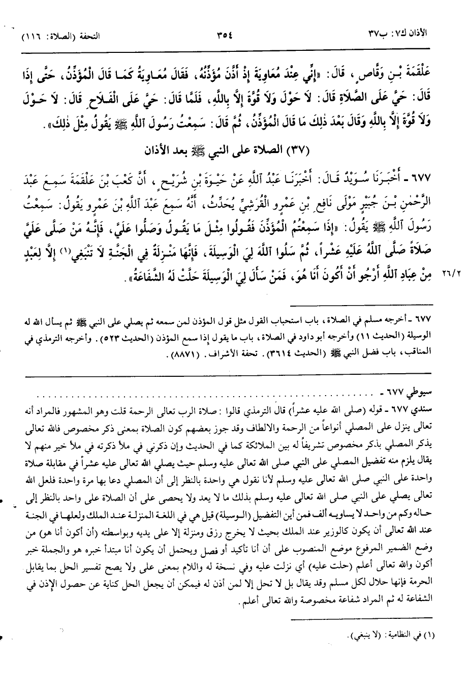 الصَّلَاةُ عَلَى النَّبِيِّ صَلَّى اللَّهُ عَلَيْهِ وَسَلَّمَ بَعْدَ الْأَذَانِ 677 - أَخْبَرَنَا سُوَيْدٌ قَالَ أَنْبَأَنَا عَبْدُ اللَّهِ عَنْ حَيْوَةَ بْنِ شُرَيْحٍ أَنَّ كَعْبَ بْنَ عَلْقَمَةَ سَمِعَ عَبْدَ الرَّحْمَنِ بْنَ جُبَيْرٍ مَوْلَى نَافِعِ بْنِ عَمْرٍو الْقُرَشِيِّ يُحَدِّثُ أَنَّهُ سَمِعَ عَبْدَ اللَّهِ بْنَ عَمْرٍو يَقُولُ سَمِعْتُ رَسُولَ اللَّهِ صَلَّى اللَّهُ عَلَيْهِ وَسَلَّمَ يَقُولُ إِذَا سَمِعْتُمْ الْمُؤَذِّنَ فَقُولُوا مِثْلَ مَا يَقُولُ وَصَلُّوا عَلَيَّ فَإِنَّهُ مَنْ صَلَّى عَلَيَّ صَلَاةً صَلَّى اللَّهُ عَلَيْهِ عَشْرًا ثُمَّ سَلُوا اللَّهَ لِي الْوَسِيلَةَ فَإِنَّهَا مَنْزِلَةٌ فِي الْجَنَّةِ لَا تَنْبَغِي إِلَّا لِعَبْدٍ مِنْ عِبَادِ اللَّهِ أَرْجُو أَنْ أَكُونَ أَنَا هُوَ فَمَنْ سَأَلَ لِي الْوَسِيلَةَ حَلَّتْ لَهُ الشَّفَاعَةُ