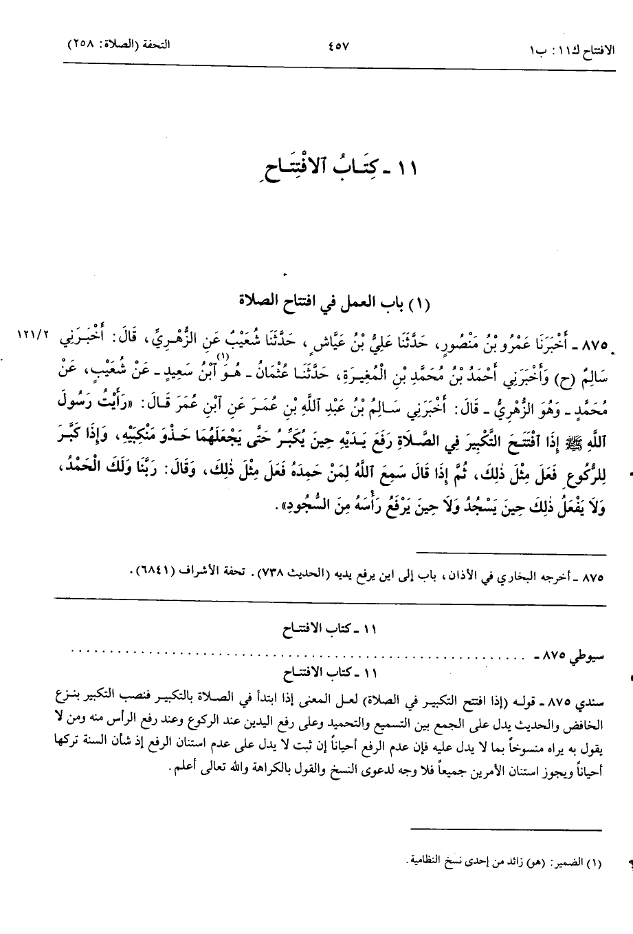 875 - أَخْبَرَنَا عَمْرُو بْنُ مَنْصُورٍ قَالَ حَدَّثَنَا عَلِيُّ بْنُ عَيَّاشٍ قَالَ حَدَّثَنَا شُعَيْبٌ عَنْ الزُّهْرِيِّ قَالَ حَدَّثَنِي سَالِمٌ ح و أَخْبَرَنِي أَحْمَدُ بْنُ مُحَمَّدِ بْنِ الْمُغِيرَةِ قَالَ حَدَّثَنَا عُثْمَانُ هُوَ ابْنُ سَعِيدٍ عَنْ شُعَيْبٍ عَنْ مُحَمَّدٍ وَهُوَ الزُّهْرِيُّ قَالَ أَخْبَرَنِي سَالِمُ بْنُ عَبْدِ اللَّهِ بْنِ عُمَرَ عَنْ ابْنِ عُمَرَ قَالَ رَأَيْتُ رَسُولَ اللَّهِ صَلَّى اللَّهُ عَلَيْهِ وَسَلَّمَ إِذَا افْتَتَحَ التَّكْبِيرَ فِي الصَّلَاةِ رَفَعَ يَدَيْهِ حِينَ يُكَبِّرُ حَتَّى يَجْعَلَهُمَا حَذْوَ مَنْكِبَيْهِ وَإِذَا كَبَّرَ لِلرُّكُوعِ فَعَلَ مِثْلَ ذَلِكَ ثُمَّ إِذَا قَالَ سَمِعَ اللَّهُ لِمَنْ حَمِدَهُ فَعَلَ مِثْلَ ذَلِكَ وَقَالَ رَبَّنَا وَلَكَ الْحَمْدُ وَلَا يَفْعَلُ ذَلِكَ حِينَ يَسْجُدُ وَلَا حِينَ يَرْفَعُ رَأْسَهُ مِنْ السُّجُودِ