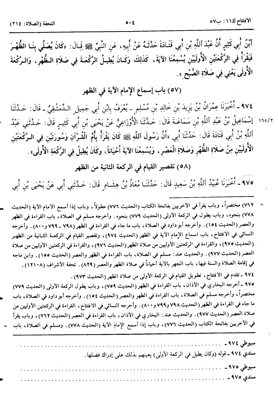 بَاب إِسْمَاعِ الْإِمَامِ الْآيَةَ فِي الظُّهْرِ 974 - أَخْبَرَنَا عِمْرَانُ بْنُ يَزِيدَ بْنِ خَالِدِ بْنِ مُسْلِمٍ يُعْرَفُ بِابْنِ أَبِي جَمِيلٍ الدِّمَشْقِيِّ قَالَ حَدَّثَنَا إِسْمَعِيلُ بْنُ عَبْدِ اللَّهِ ابْنِ سَمَاعَةَ قَالَ حَدَّثَنَا الْأَوْزَاعِيُّ عَنْ يَحْيَى بْنِ أَبِي كَثِيرٍ قَالَ حَدَّثَنِي عَبْدُ اللَّهِ بْنُ أَبِي قَتَادَةَ قَالَ حَدَّثَنَا أَبِي أَنَّ رَسُولَ اللَّهِ صَلَّى اللَّهُ عَلَيْهِ وَسَلَّمَ كَانَ يَقْرَأُ بِأُمِّ الْقُرْآنِ وَسُورَتَيْنِ فِي الرَّكْعَتَيْنِ الْأُولَيَيْنِ مِنْ صَلَاةِ الظُّهْرِ وَصَلَاةِ الْعَصْرِ وَيُسْمِعُنَا الْآيَةَ أَحْيَانًا وَكَانَ يُطِيلُ فِي الرَّكْعَةِ الْأُولَى