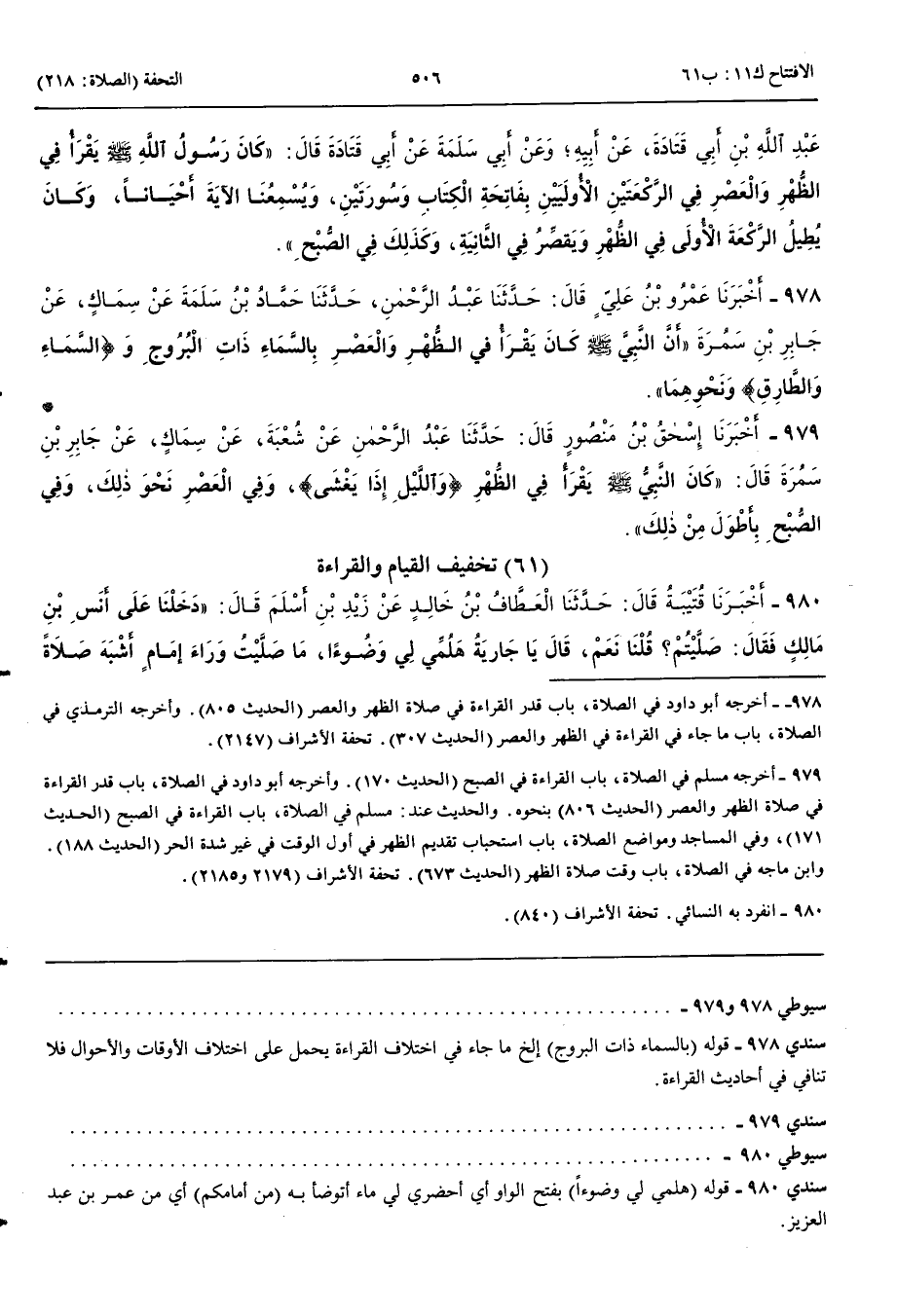 تَخْفِيفُ الْقِيَامِ وَالْقِرَاءَةِ 980 - أَخْبَرَنَا قُتَيْبَةُ قَالَ حَدَّثَنَا الْعَطَّافُ بْنُ خَالِدٍ عَنْ زَيْدِ بْنِ أَسْلَمَ قَالَ دَخَلْنَا عَلَى أَنَسِ بْنِ مَالِكٍ فَقَالَ صَلَّيْتُمْ قُلْنَا نَعَمْ قَالَ يَا جَارِيَةُ هَلُمِّي لِي وَضُوءًا مَا صَلَّيْتُ وَرَاءَ إِمَامٍ أَشْبَهَ صَلَاةً بِرَسُولِ اللَّهِ صَلَّى اللَّهُ عَلَيْهِ وَسَلَّمَ مِنْ إِمَامِكُمْ هَذَا قَالَ زَيْدٌ وَكَانَ عُمَرُ بْنُ عَبْدِ الْعَزِيزِ يُتِمُّ الرُّكُوعَ وَالسُّجُودَ وَيُخَفِّفُ الْقِيَامَ وَالْقُعُودَ