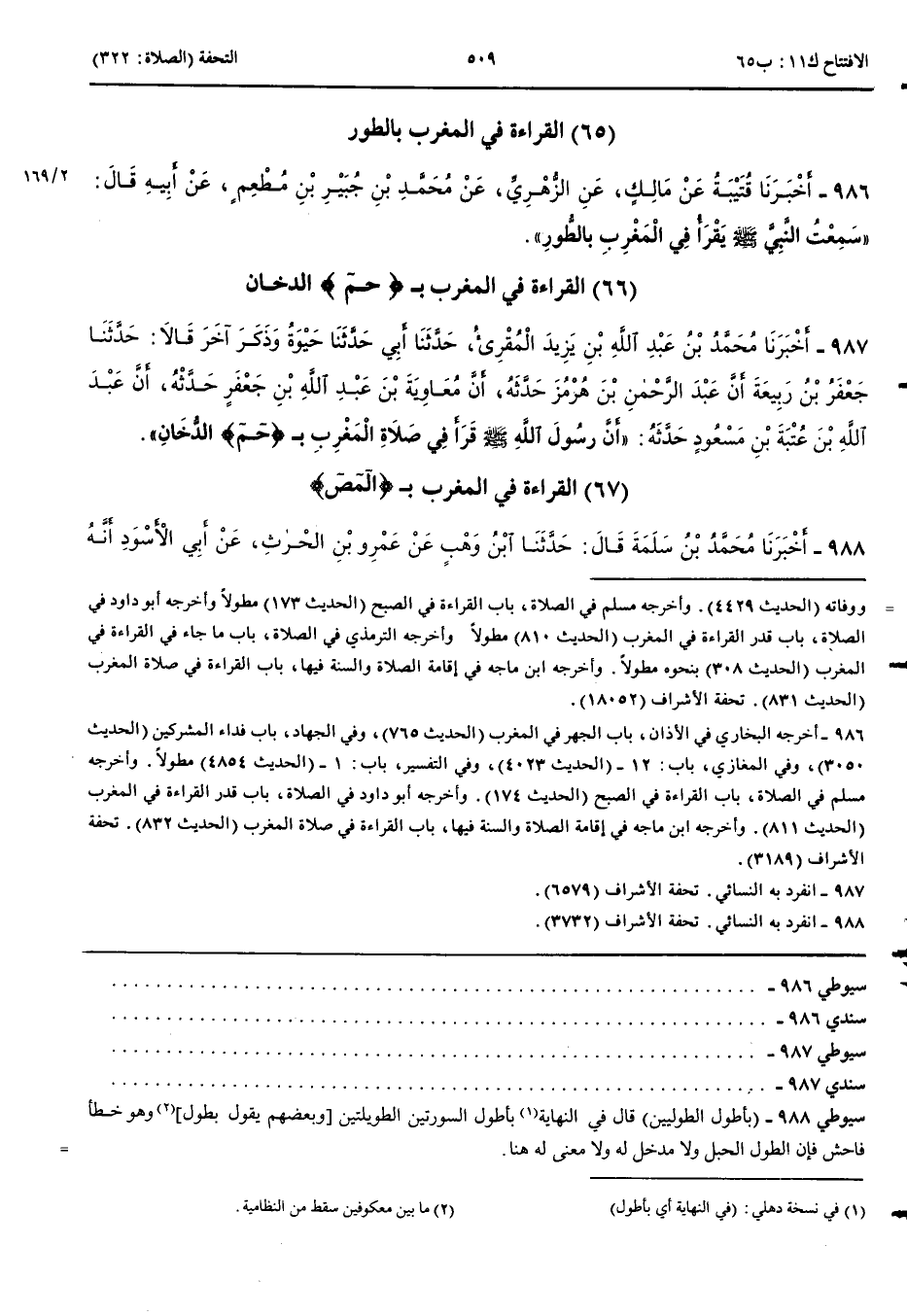 الْقِرَاءَةُ فِي الْمَغْرِبِ بِ حم الدُّخَانِ 987 - أَخْبَرَنَا مُحَمَّدُ بْنُ عَبْدِ اللَّهِ بْنِ يَزِيدَ الْمُقْرِئُ قَالَ حَدَّثَنَا أَبِي قَالَ حَدَّثَنَا حَيْوَةُ وَذَكَرَ آخَرَ قَالَا حَدَّثَنَا جَعْفَرُ بْنُ رَبِيعَةَ أَنَّ عَبْدَ الرَّحْمَنِ بْنَ هُرْمُزَ حَدَّثَهُ أَنَّ مُعَاوِيَةَ بْنَ عَبْدِ اللَّهِ بْنِ جَعْفَرٍ حَدَّثَهُ أَنَّ عَبْدَ اللَّهِ بْنَ عُتْبَةَ بْنِ مَسْعُودٍ حَدَّثَهُ أَنَّ رَسُولَ اللَّهِ صَلَّى اللَّهُ عَلَيْهِ وَسَلَّمَ قَرَأَ فِي صَلَاةِ الْمَغْرِبِ بِ حم الدُّخَانِ