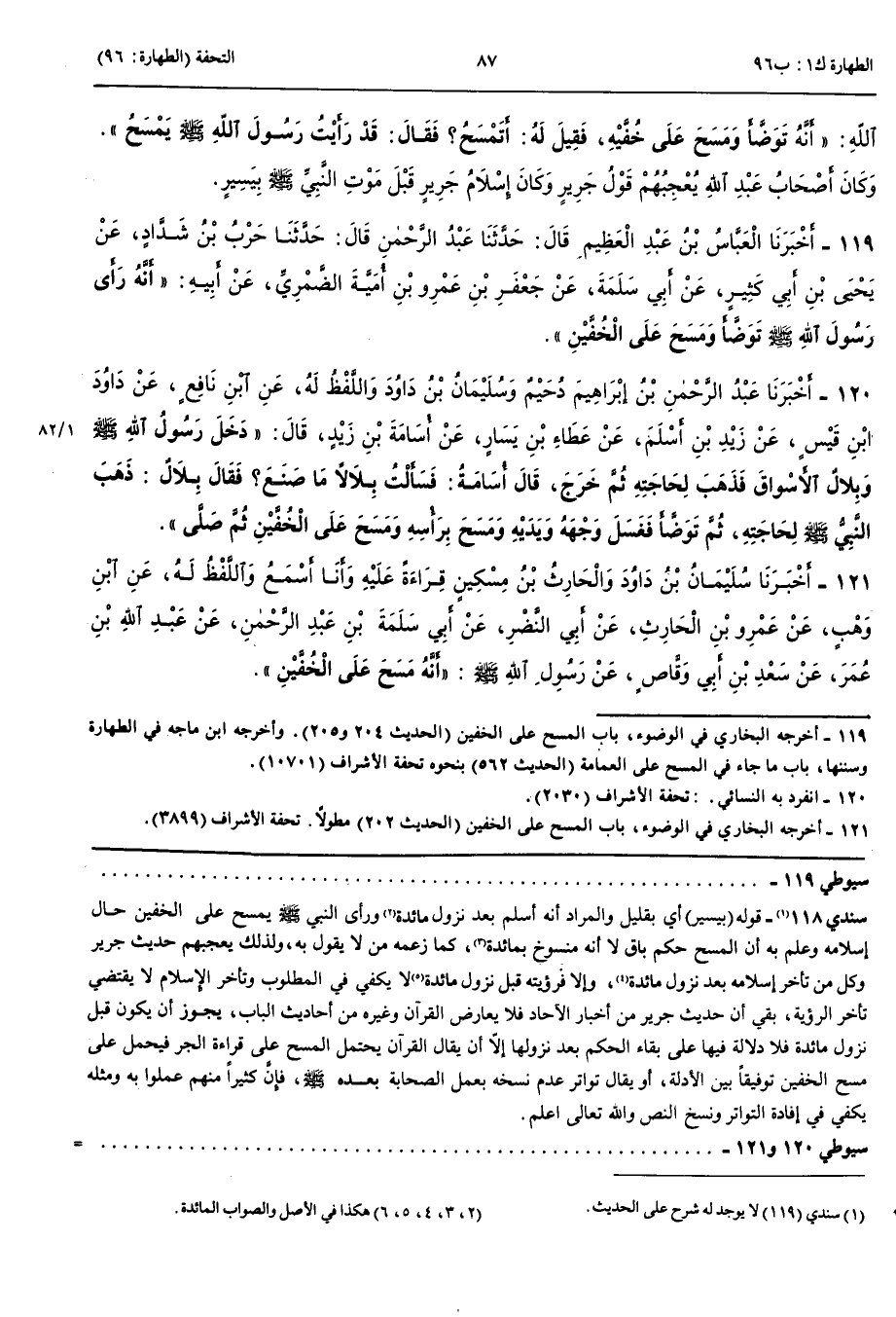 121 - أَخْبَرَنَا سُلَيْمَانُ بْنُ دَاوُدَ وَالْحَارِثُ بْنُ مِسْكِينٍ قِرَاءَةً عَلَيْهِ وَأَنَا أَسْمَعُ وَاللَّفْظُ لَهُ عَنْ ابْنِ وَهْبٍ عَنْ عَمْرِو بْنِ الْحَارِثِ عَنْ أَبِي النَّضْرِ عَنْ أَبِي سَلَمَةَ بْنِ عَبْدِ الرَّحْمَنِ عَنْ عَبْدِ اللَّهِ بْنِ عُمَرَ عَنْ سَعْدِ بْنِ أَبِي وَقَّاصٍ عَنْ رَسُولِ اللَّهِ صَلَّى اللَّهُ عَلَيْهِ وَسَلَّمَ أَنَّهُ مَسَحَ عَلَى الْخُفَّيْنِ