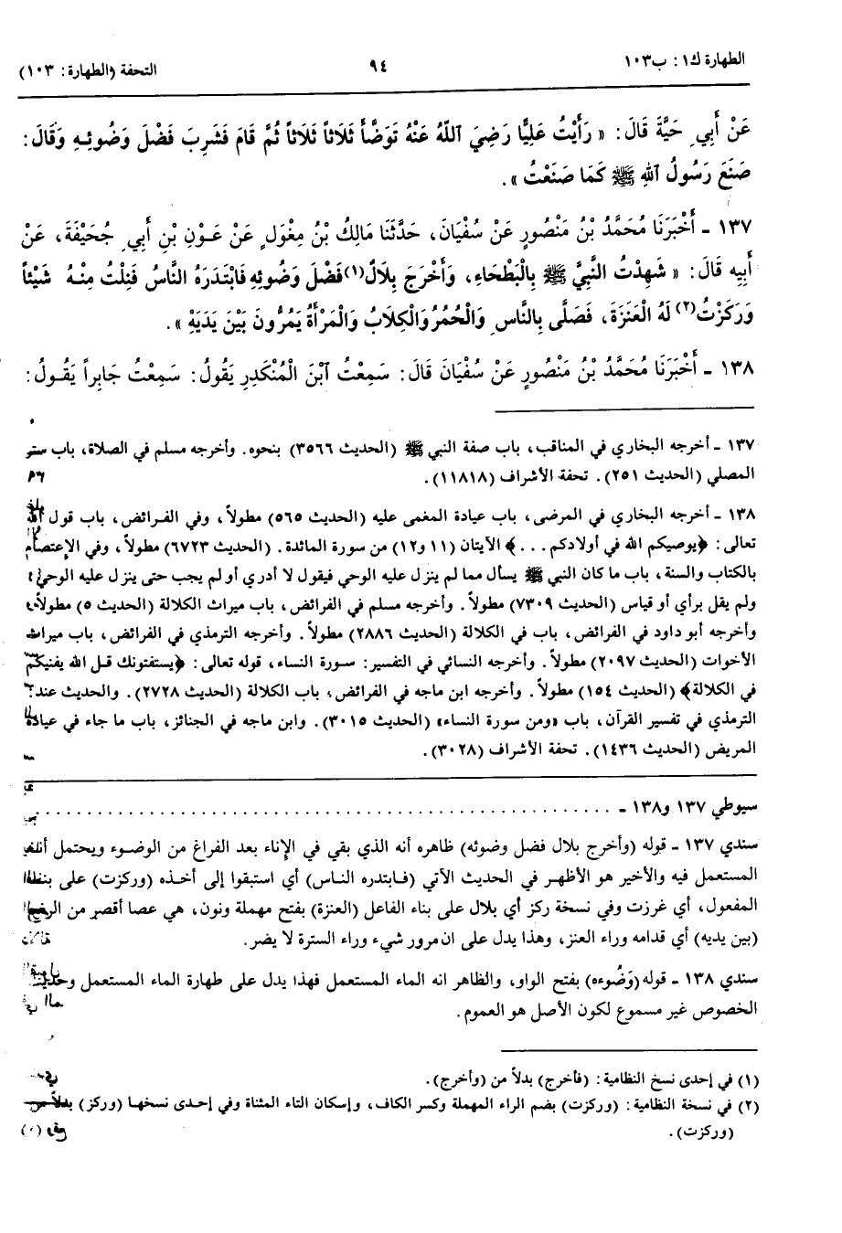138 - أَخْبَرَنَا مُحَمَّدُ بْنُ مَنْصُورٍ عَنْ سُفْيَانَ قَالَ سَمِعْتُ ابْنَ الْمُنْكَدِرِ يَقُولُ سَمِعْتُ جَابِرًا يَقُولُ مَرِضْتُ فَأَتَانِي رَسُولُ اللَّهِ صَلَّى اللَّهُ عَلَيْهِ وَسَلَّمَ وَأَبُو بَكْرٍ يَعُودَانِي فَوَجَدَانِي قَدْ أُغْمِيَ عَلَيَّ فَتَوَضَّأَ رَسُولُ اللَّهِ صَلَّى اللَّهُ عَلَيْهِ وَسَلَّمَ فَصَبَّ عَلَيَّ وَضُوءَهُ