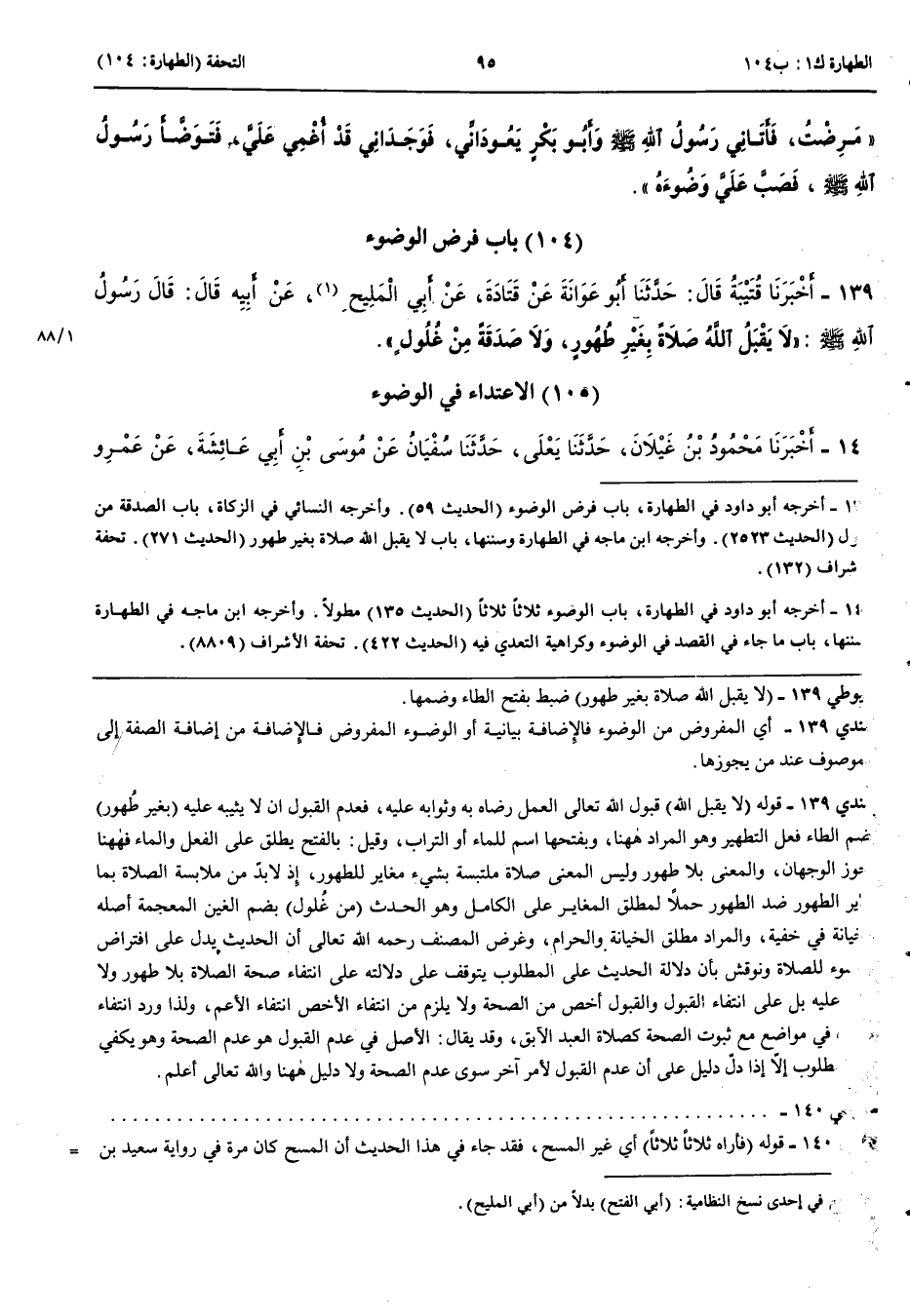 الِاعْتِدَاءُ فِي الْوُضُوءِ 140 - أَخْبَرَنَا مَحْمُودُ بْنُ غَيْلَانَ قَالَ حَدَّثَنَا يَعْلَى قَالَ حَدَّثَنَا سُفْيَانُ عَنْ مُوسَى بْنِ أَبِي عَائِشَةَ عَنْ عَمْرِو بْنِ شُعَيْبٍ عَنْ أَبِيهِ عَنْ جَدِّهِ قَالَ جَاءَ أَعْرَابِيٌّ إِلَى النَّبِيِّ صَلَّى اللَّهُ عَلَيْهِ وَسَلَّمَ يَسْأَلُهُ عَنْ الْوُضُوءِ فَأَرَاهُ الْوُضُوءَ ثَلَاثًا ثَلَاثًا ثُمَّ قَالَ هَكَذَا الْوُضُوءُ فَمَنْ زَادَ عَلَى هَذَا فَقَدْ أَسَاءَ وَتَعَدَّى وَظَلَمَ