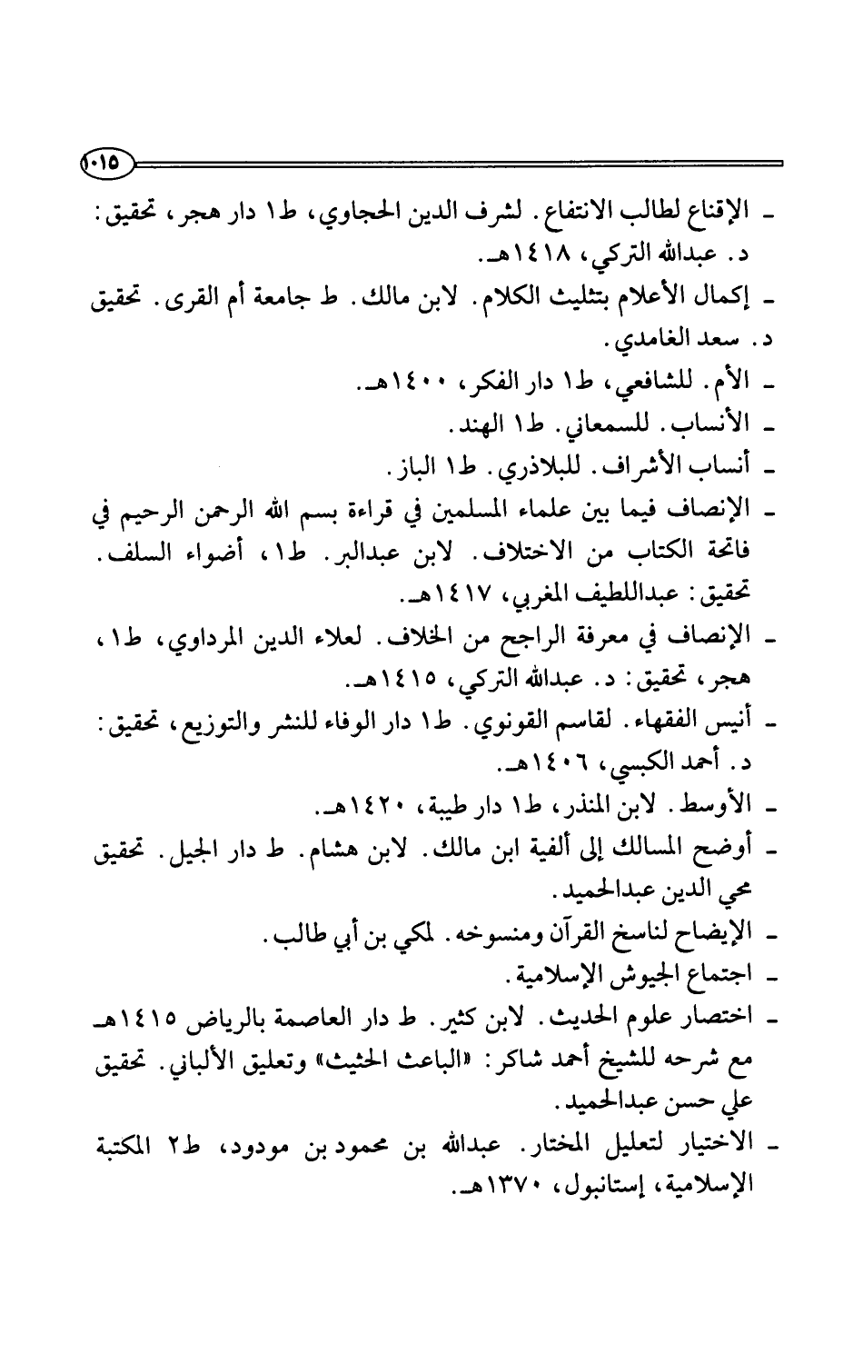 - الإقناع لطالب الانتفاع. لشرف الدين الحجاوي، ط 1 دار هجر، تحقيق: د. عبد اللَّه التركي، 1418 هـ.