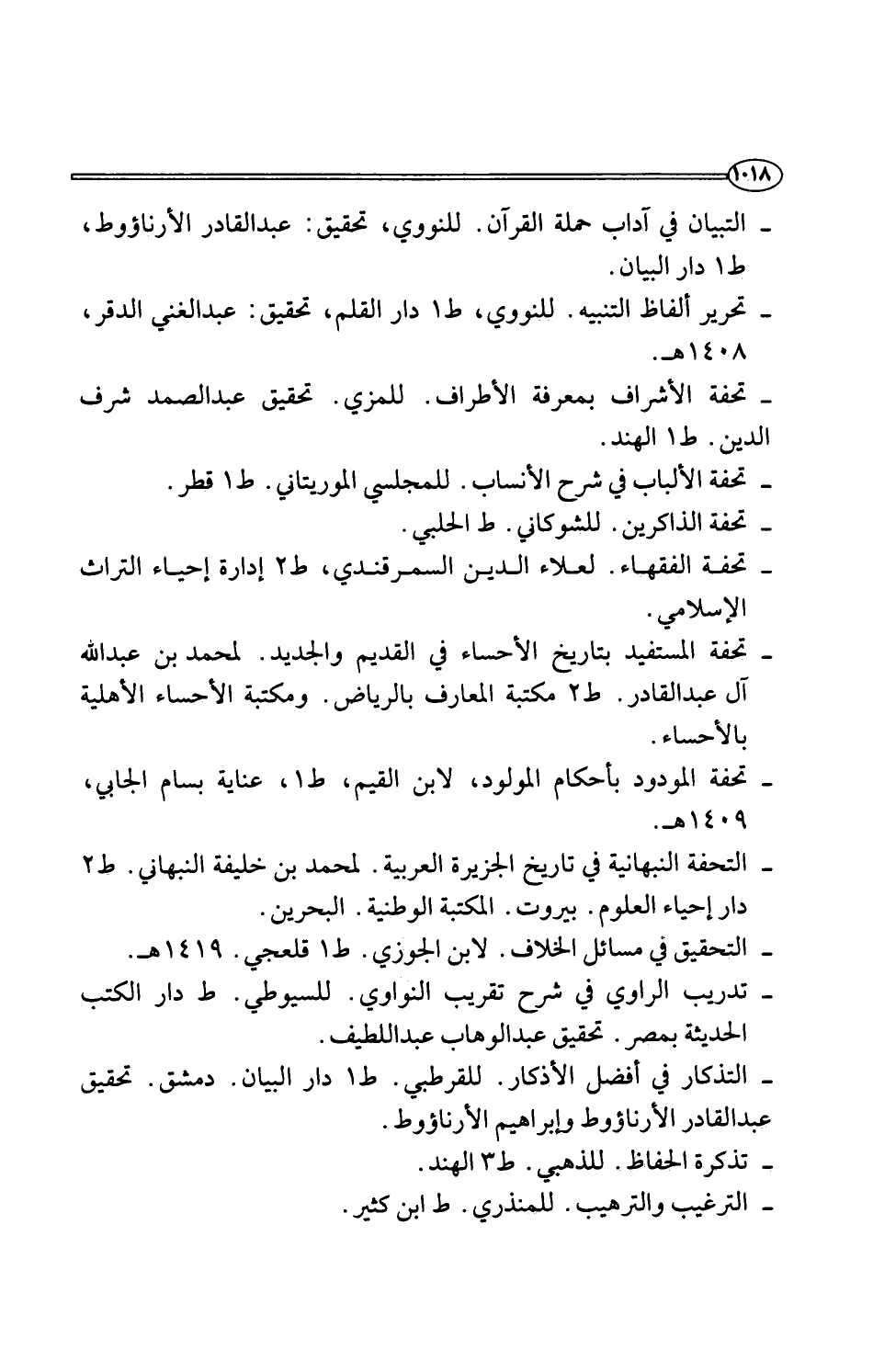 - التبيان في آداب حملة القرآن. للنووي، تحقيق: عبد القادر الأرناؤوط، ط 1 دار البيان.