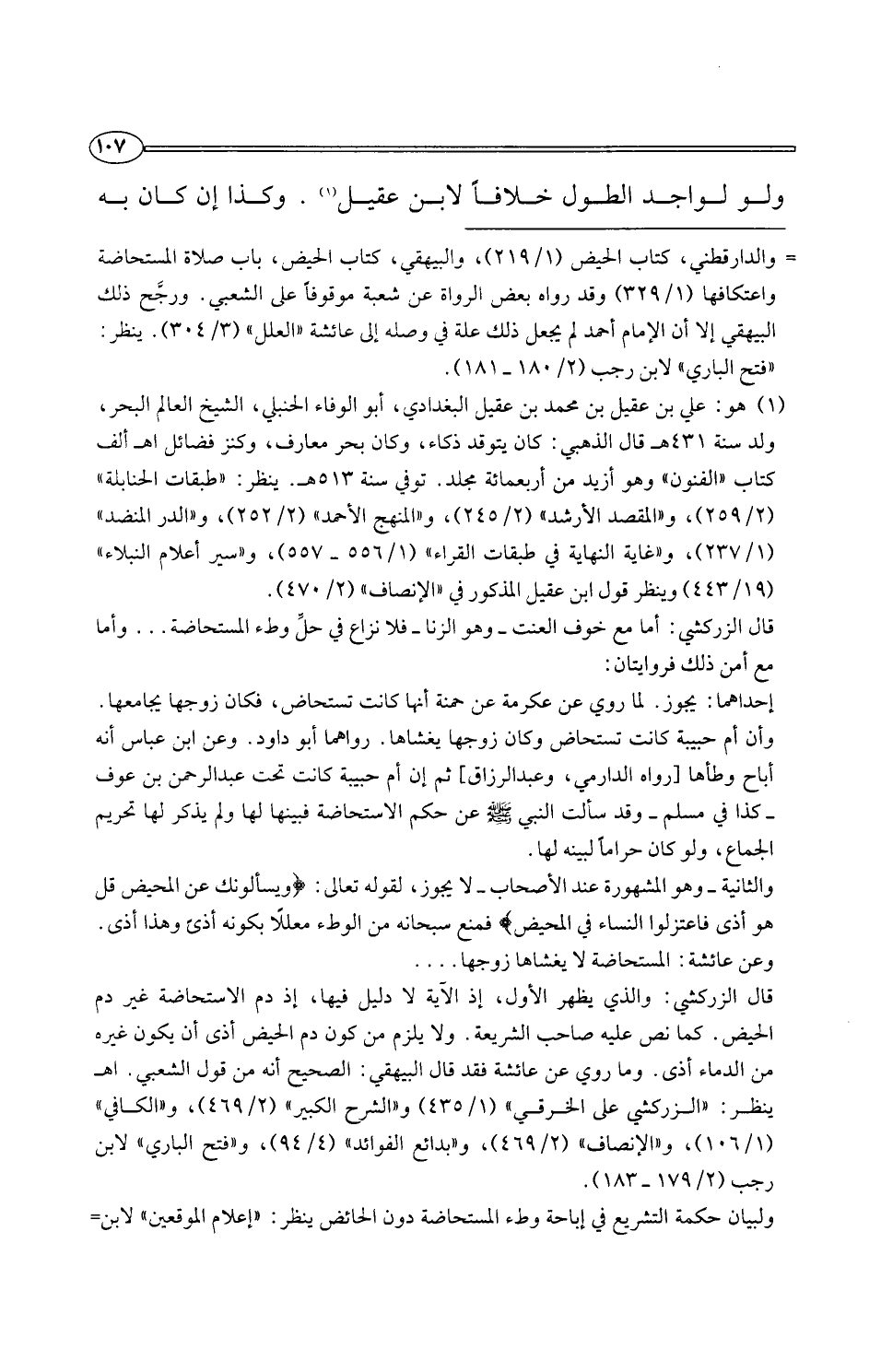 (¬1) هو: علي بن عقيل بن محمد بن عقيل البغدادي، أبو الوفاء الحنبلي، الشيخ العالم البحر، ولد سنة 431 هـ قال الذهبي: كان يتوقد ذكاء، وكان بحر معارف، وكنز فضائل اهـ ألف كتاب "الفنون" وهو أزيد من أربعمائة مجلد. توفي سنة 513 هـ. ينظر: "طبقات الحنابلة" (2/ 259)، و"المقصد الأرشد" (2/ 245)، و"المنهج الأحمد" (2/ 252)، و"الدر المنضد" (1/ 237)، و"غاية النهاية في طبقات القراء" (1/ 556 - 557)، و"سير أعلام النبلاء" (19/ 443) وينظر قول ابن عقيل المذكور في "الإنصاف" (2/ 470).