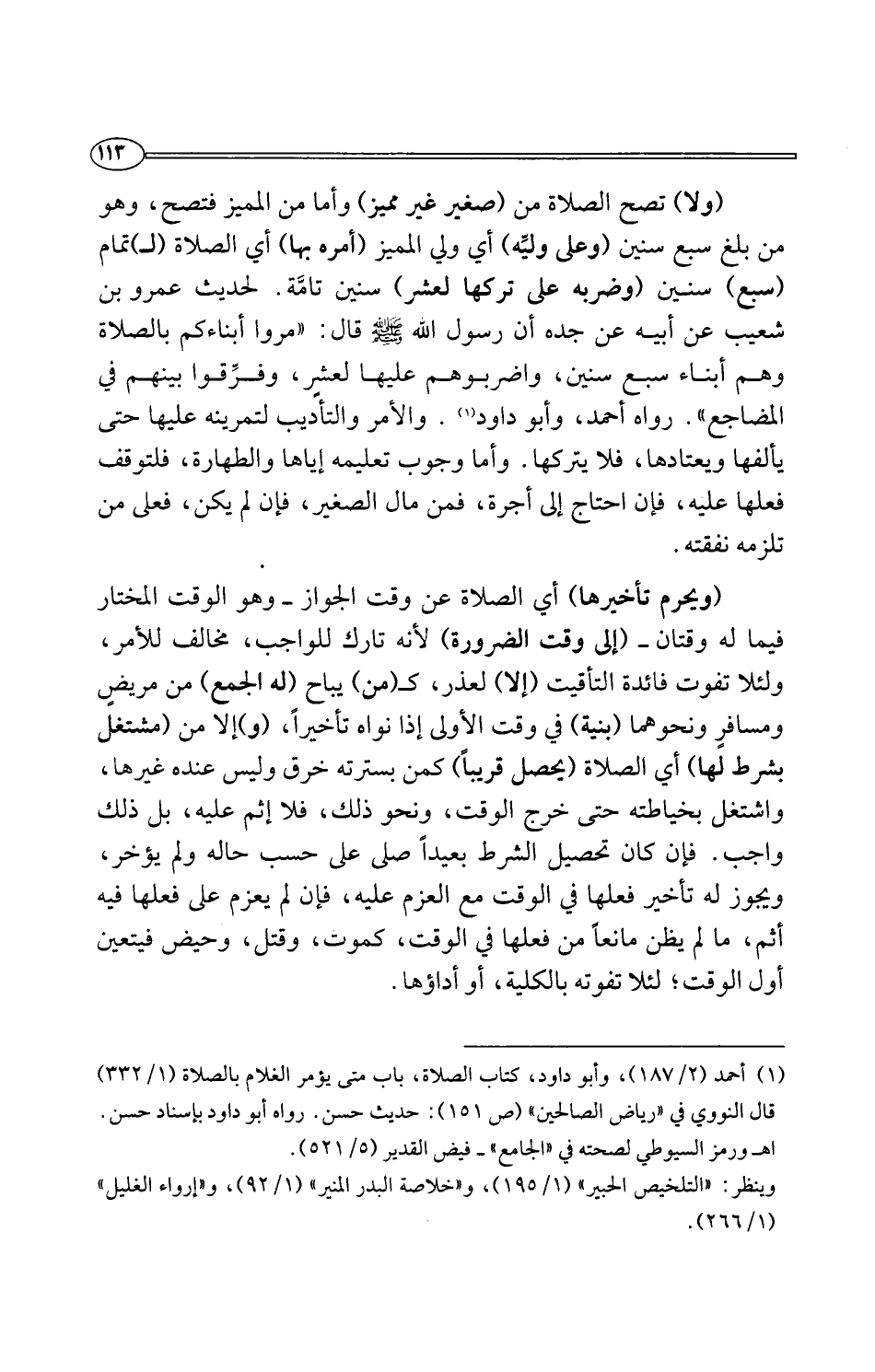 (¬1) أحمد (2/ 187)، وأبو داود، كتاب الصلاة، باب متى يؤمر الغلام بالصلاة (1/ 332) قال النووي في "رياض الصالحين" (ص 151): حديث حسن. رواه أبو داود بإسناد حسن. اهـ ورمز السيوطي لصحته في "الجامع" - فيض القدير (5/ 521).