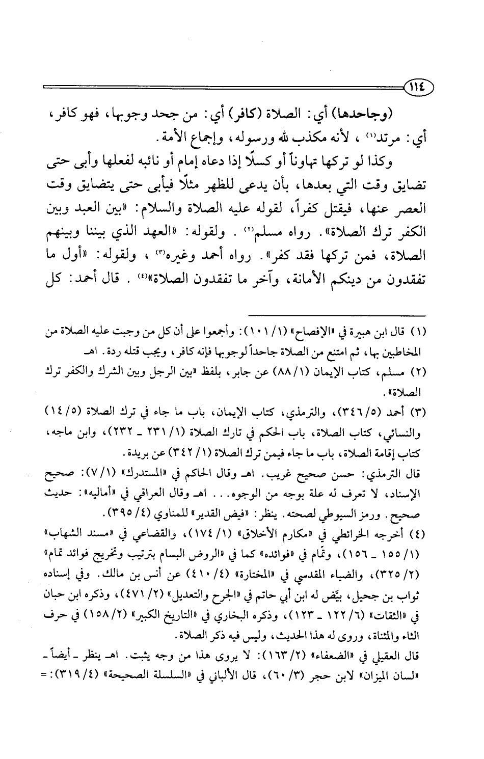 (¬3) أحمد (5/ 346)، والترمذي، كتاب الإيمان، باب ما جاء في ترك الصلاة (5/ 14) والنسائي، كتاب الصلاة، باب الحكم في تارك الصلاة (1/ 231 - 232)، وابن ماجه، كتاب إقامة الصلاة، باب ما جاء فيمن ترك الصلاة (1/ 342) عن بريدة.