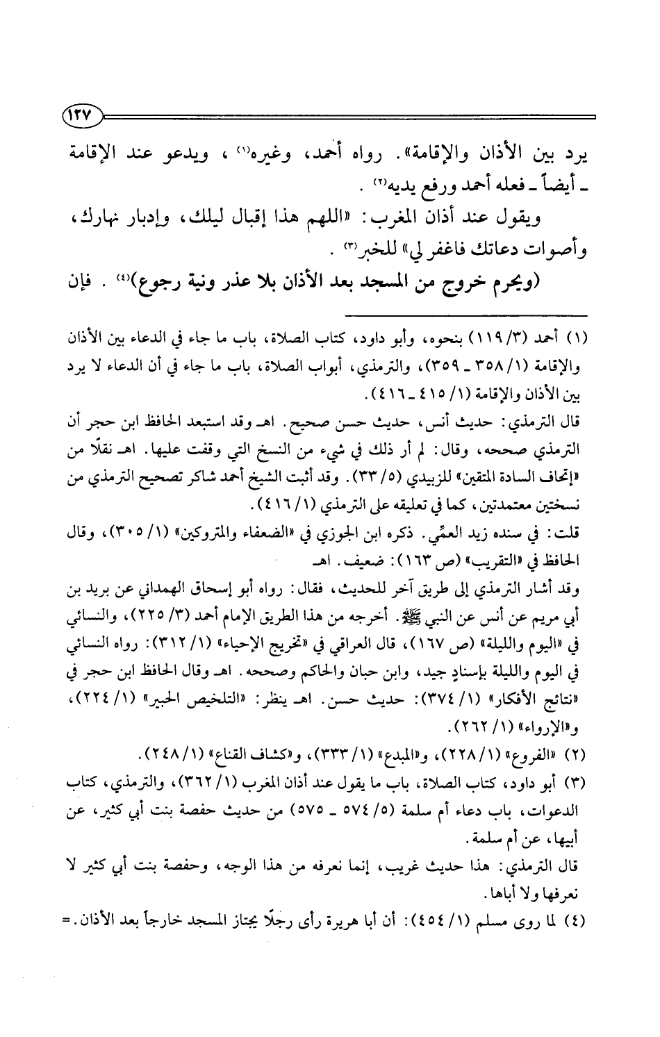 (¬1) أحمد (3/ 119) بنحوه، وأبو داود، كتاب الصلاة، باب ما جاء في الدعاء بين الأذان والإقامة (1/ 358 - 359)، والترمذي، أبواب الصلاة، باب ما جاء في أن الدعاء لا يرد بين الأذان والإقامة (1/ 415 - 416).