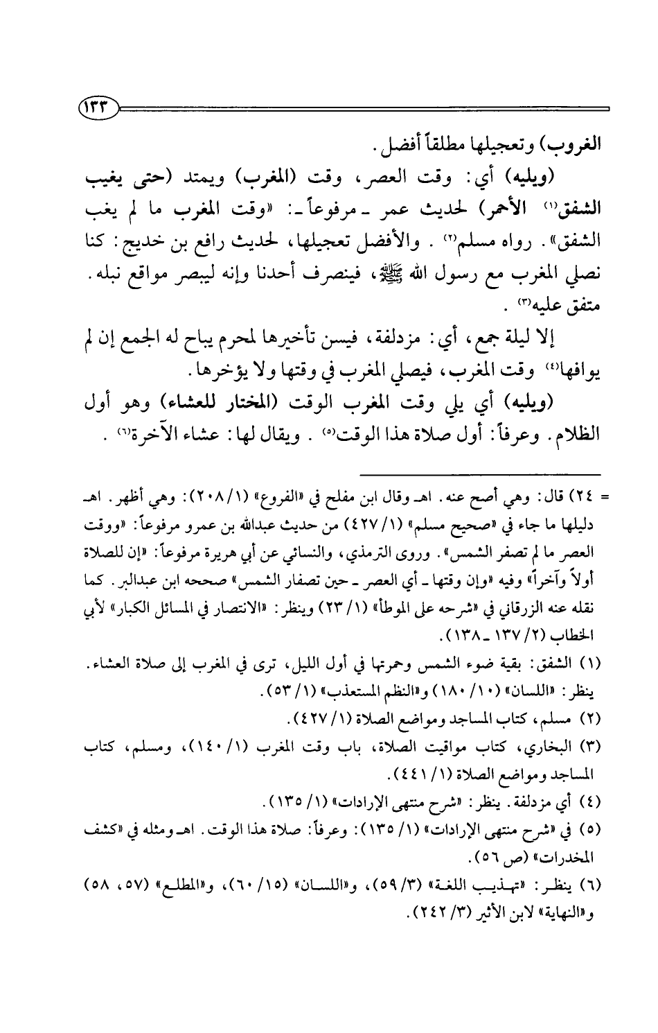(¬5) في "شرح منتهى الإرادات" (1/ 135): وعرفًا: صلاة هذا الوقت. اهـ ومثله في "كشف المخدرات" (ص 56).