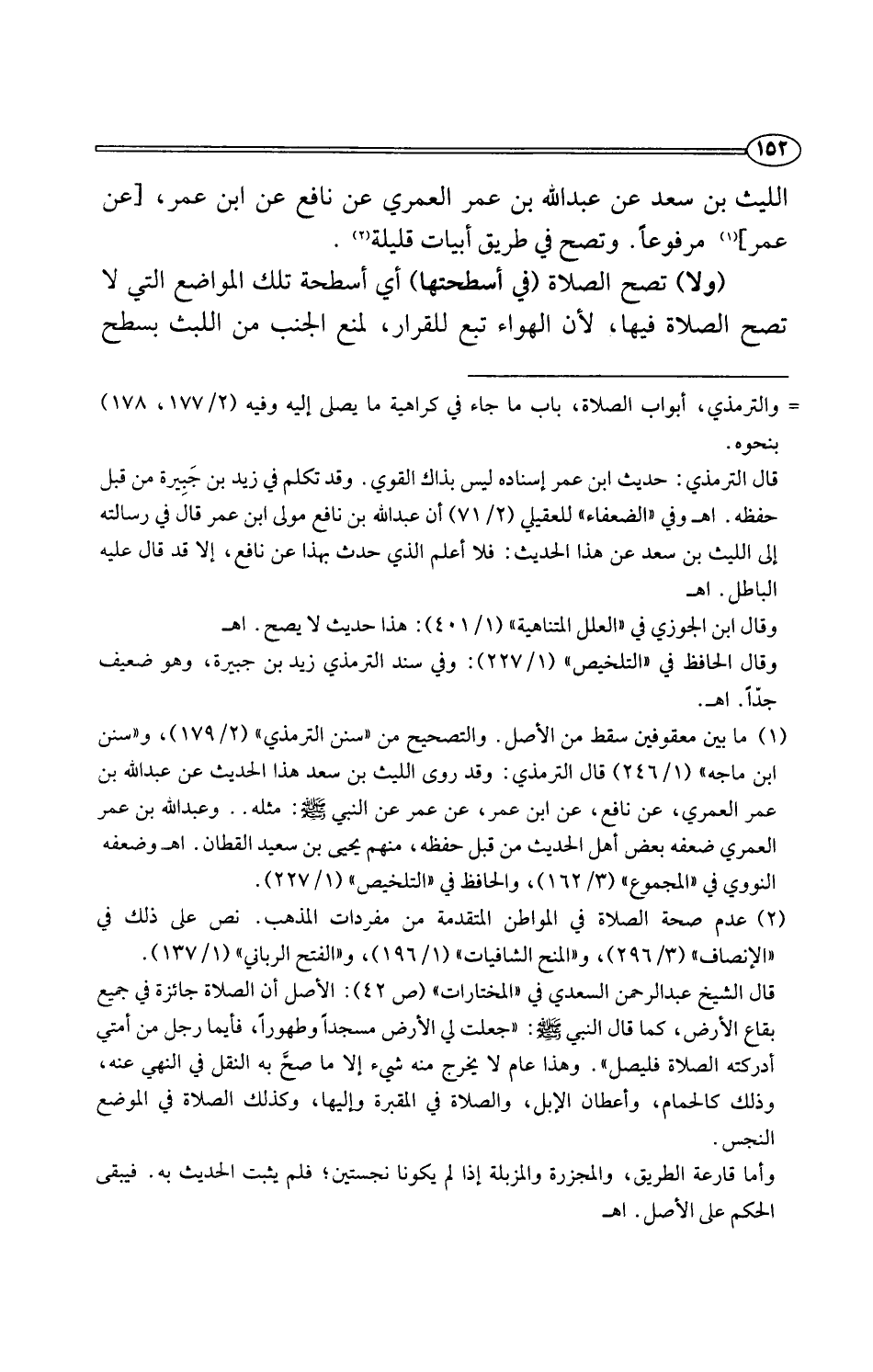(¬1) ما بين معقوفين سقط من الأصل. والتصحيح من "سنن الترمذي" (2/ 179)، و"سنن ابن ماجه" (1/ 246) قال الترمذي: وقد روى الليث بن سعد هذا الحديث عن عبد اللَّه بن عمر العمري، عن نافع، عن ابن عمر، عن عمر عن النبي -صلى اللَّه عليه وسلم-: مثله. . وعبد اللَّه بن عمر العمري ضعفه بعض أهل الحديث من قبل حفظه، منهم يحيى بن سعيد القطان. اهـ وضعفه النووي في "المجموع" (3/ 162)، والحافظ في "التلخيص" (1/ 227).
