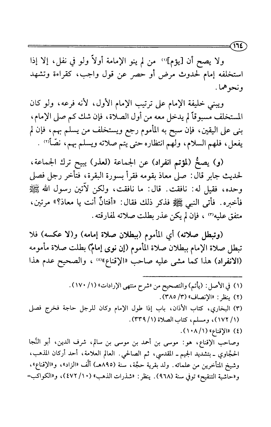 (¬1) في الأصل: (يأتم) والتصحيح من "شرح منتهى الإرادات" (1/ 170).