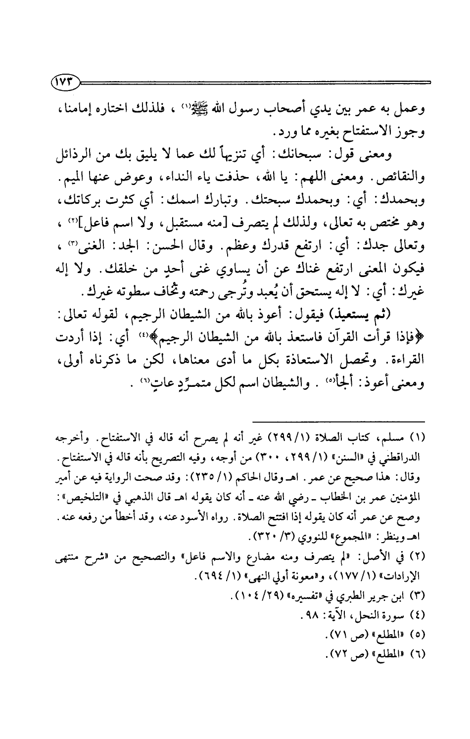 (¬1) مسلم، كتاب الصلاة (1/ 299) غير أنه لم يصرح أنه قاله في الاستفتاح. وأخرجه الدراقطني في "السنن" (1/ 299، 300) من أوجه، وفيه التصريح بأنه قاله قي الاستفتاح. وقال: هذا صحيح عن عمر. اهـ وقال الحاكم (1/ 235): وقد صحت الرواية فيه عن أمير المؤمنين عمر بن الخطاب -رضي اللَّه عنه- أنه كان يقوله اهـ قال الذهبي في "التلخيص": وصح عن عمر أنه كان يقوله إذا افتتح الصلاة. رواه الأسود عنه، وقد أخطأ من رفعه عنه. اهـ وينظر: "المجموع" للنووي (3/ 320).