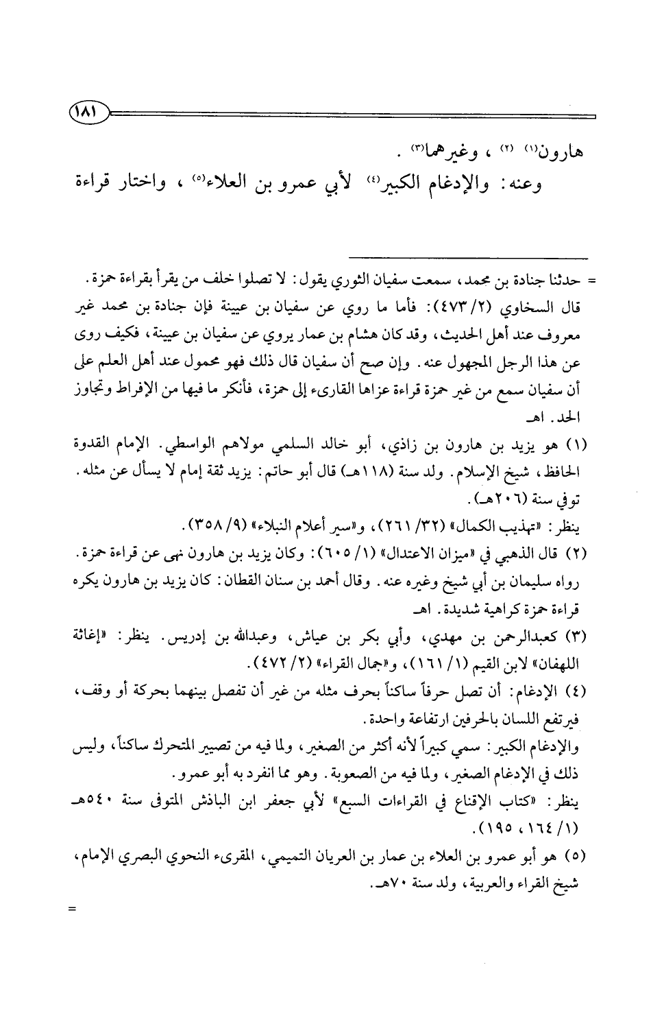(¬5) هو أبو عمرو بن العلاء بن عمار بن العريان التميمي، المقرئ النحوي البصري الإمام، شيخ القراء والعربية، ولد سنة 70 هـ. =