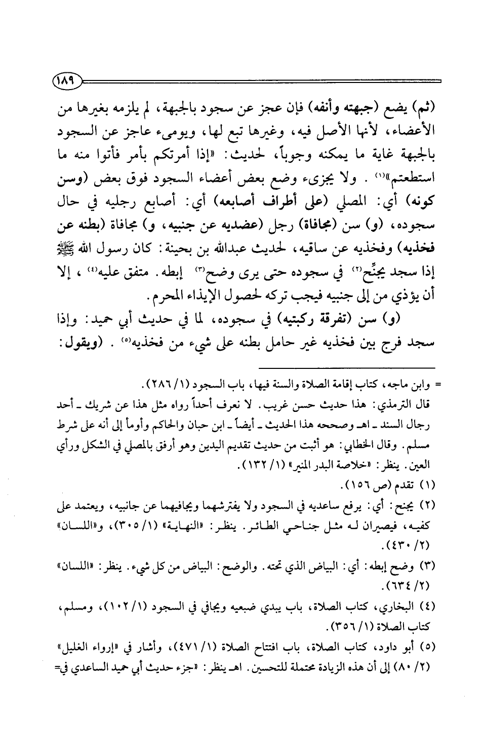 (¬4) البخاري، كتاب الصلاة، باب يبدي ضبعيه ويجافي في السجود (1/ 102)، ومسلم، كتاب الصلاة (1/ 356).