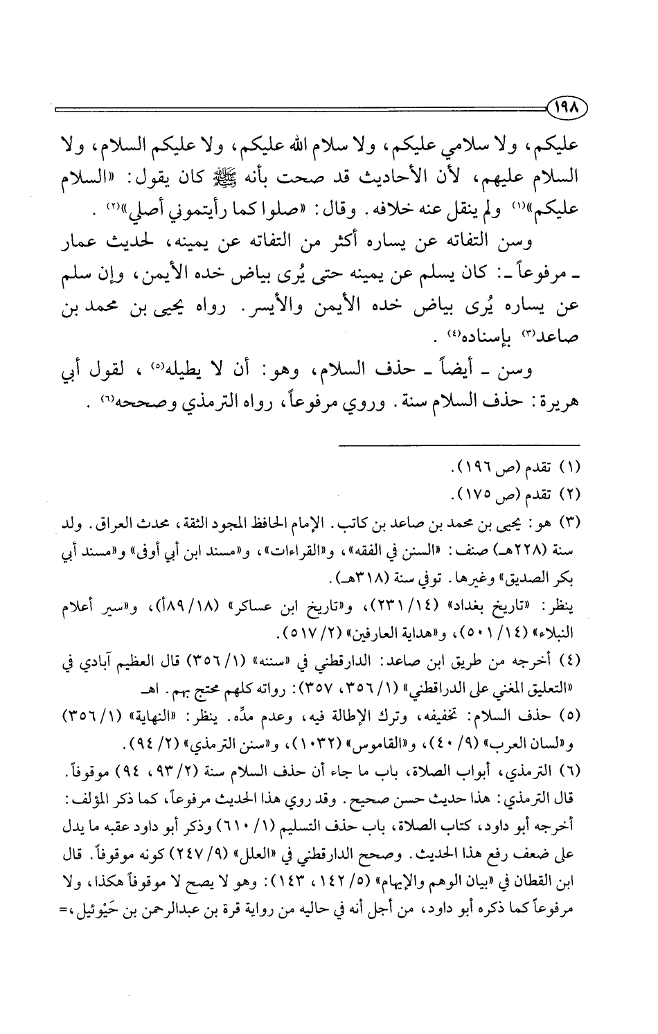 (¬3) هو: يحيى بن محمد بن صاعد بن كاتب. الإمام الحافظ المجود الثقة، محدث العراق. ولد سنة (228 هـ) صنف: "السنن في الفقه"، و"القراءات"، و"مسند ابن أبي أوفى" و"مسند أبي بكر الصديق" وغيرها. توفي سنة (318 هـ).