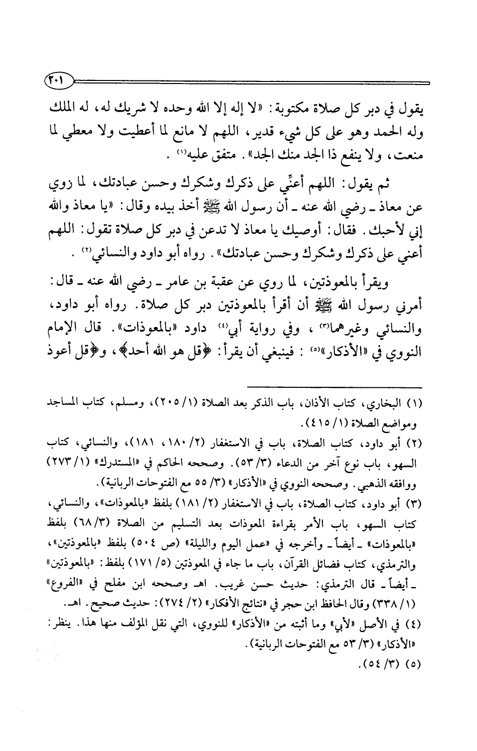(¬3) أبو داود، كتاب الصلاة، باب في الاستغفار (2/ 181) بلفظ "بالمعوذات"، والنسائي، كتاب السهو، باب الأمر بقراءة المعوذات بعد التسليم من الصلاة (3/ 68) بلفظ "بالمعوذات" -أيضًا- وأخرجه في "عمل اليوم والليلة" (ص 504) بلفظ "بالمعوذتين"، والترمذي، كتاب فضائل القرآن، باب ما جاء في المعوذتين (5/ 171) بلفظ: "بالمعوذتين" -أيضًا- قال الترمذي: حديث حسن غريب. اهـ وصححه ابن مفلح في "الفروع" (1/ 338) وقال الحافظ ابن حجر في "نتائج الأفكار" (2/ 274): حديث صحيح. اهـ.