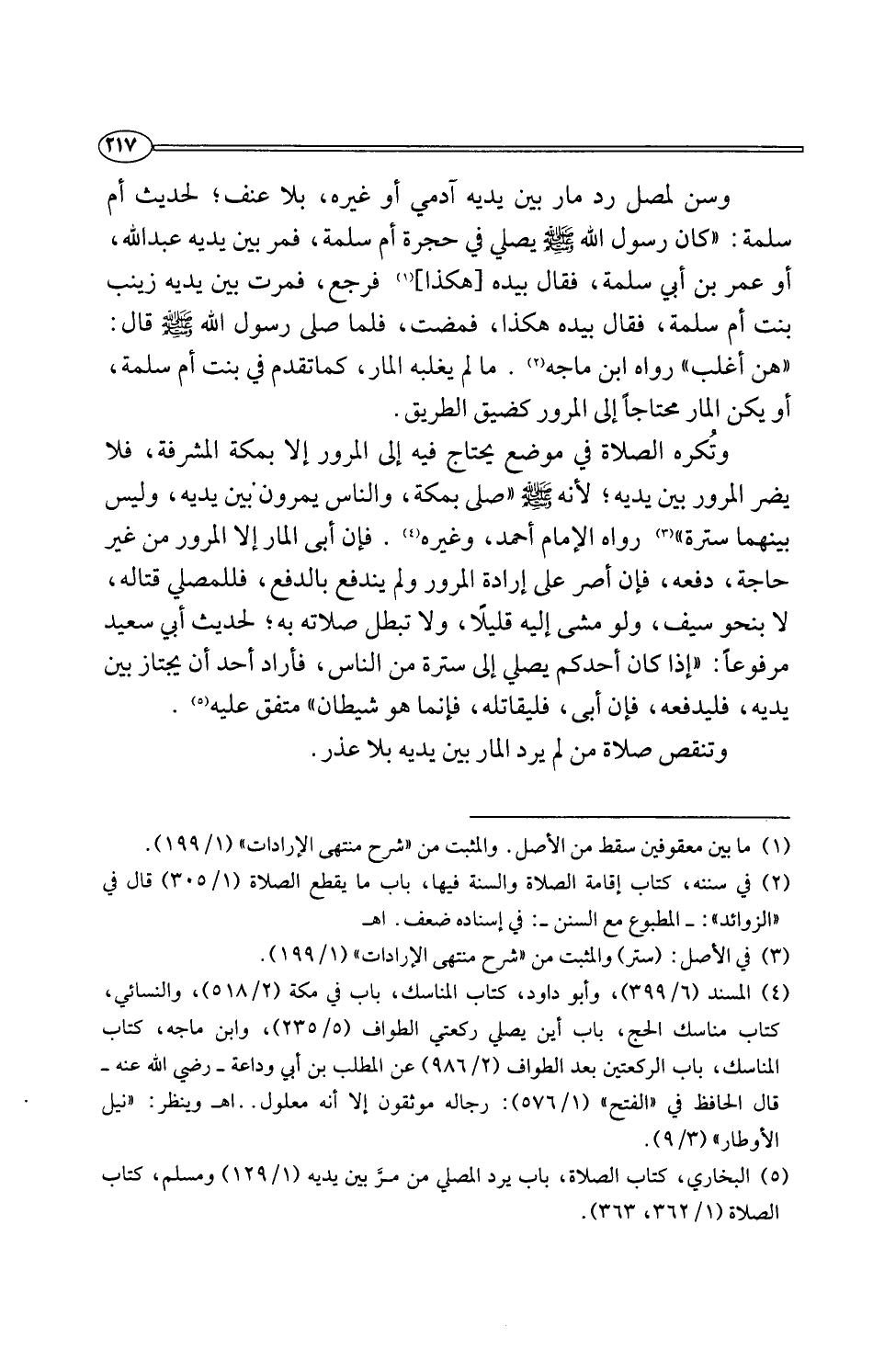 (¬5) البخاري، كتاب الصلاة، باب يرد المصلي من مرَّ بين يديه (1/ 129) ومسلم، كتاب الصلاة (1/ 362، 363).
