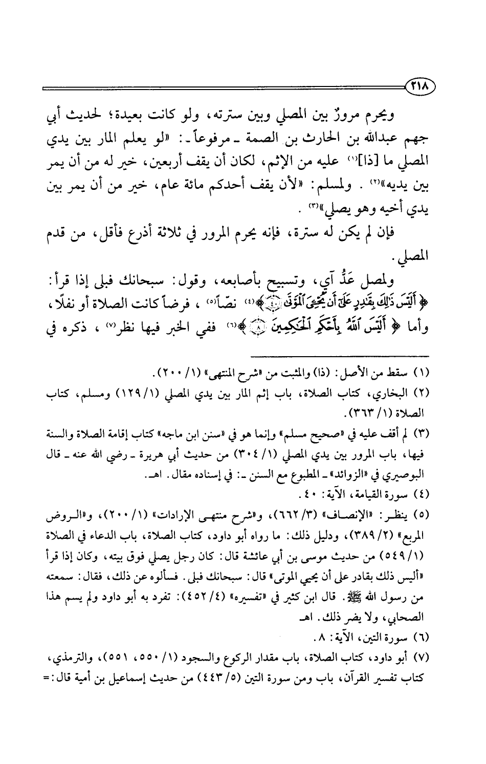 (¬2) البخاري، كتاب الصلاة، باب إثم المار بين يدي المصلي (1/ 129) ومسلم، كتاب الصلاة (1/ 363).