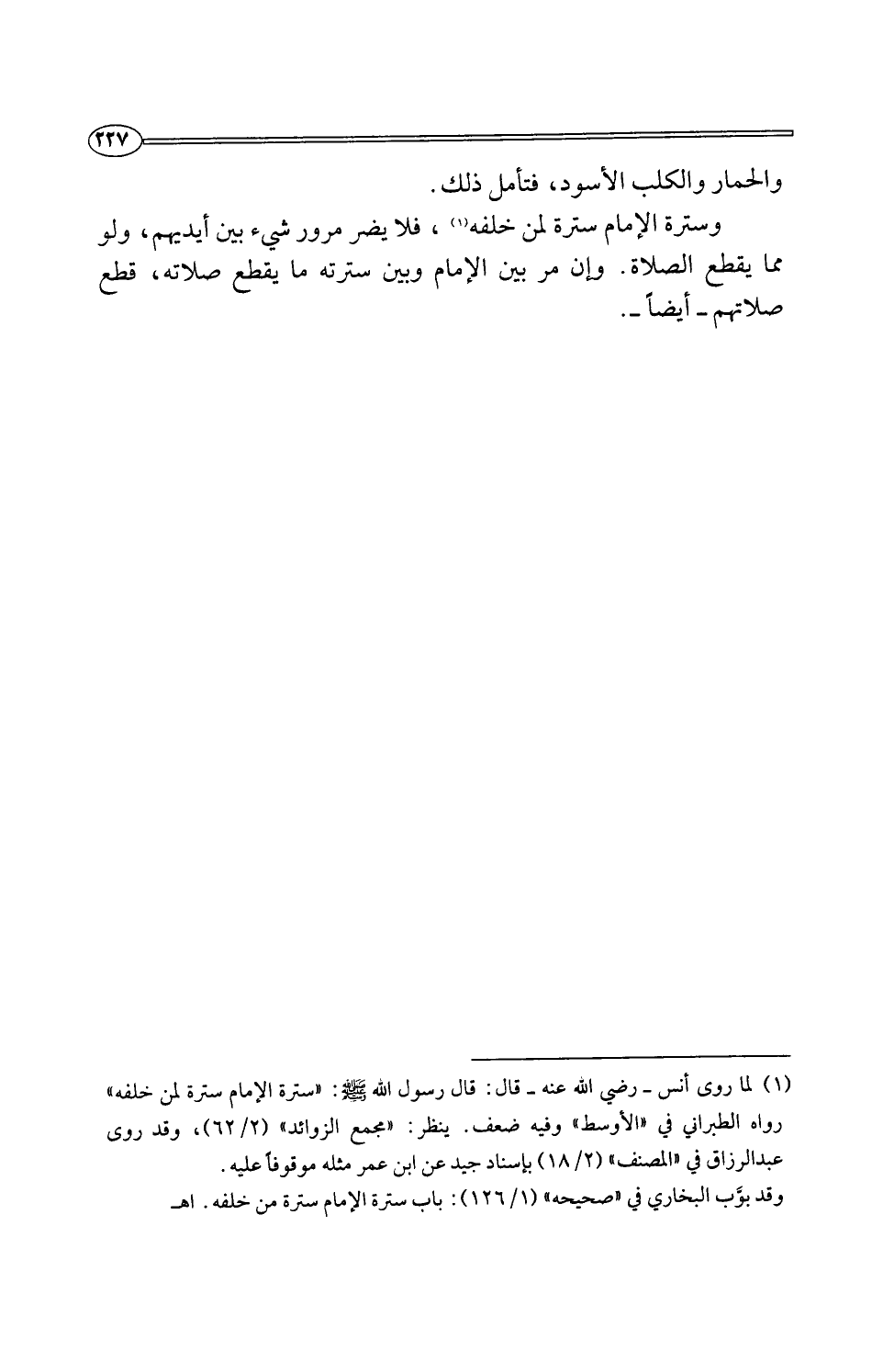 (¬1) لما روى أنس -رضي اللَّه عنه- قال: قال رسول اللَّه -صلى اللَّه عليه وسلم-: "سترة الإمام سترة لمن خلفه" رواه الطبراني في "الأوسط" وفيه ضعف. ينظر: "مجمع الزوائد" (2/ 62)، وقد روى عبد الرزاق في "المصنف" (2/ 18) بإسناد جيد عن ابن عمر مثله موقوفًا عليه.