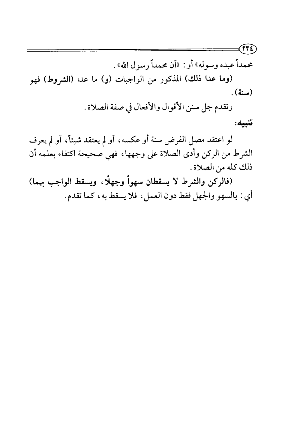 (فالركن والشرط لا يسقطان سهوًا وجهلًا، ويسقط الواجب بهما) أي: بالسهو والجهل فقط دون العمل، فلا يسقط به، كما تقدم.