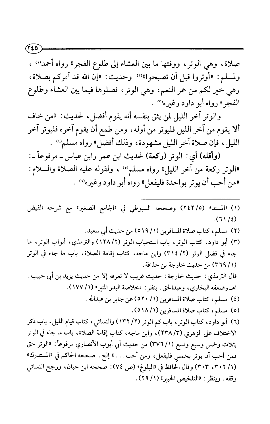 (¬3) أبو داود، كتاب الوتر، باب استحباب الوتر (2/ 128) والترمذي، أبواب الوتر، ما جاء في فضل الوتر (2/ 314) وابن ماجه، كتاب إقامة الصلاة، باب ما جاء في الوتر (1/ 369) من حديث خارجة بن حذافة.