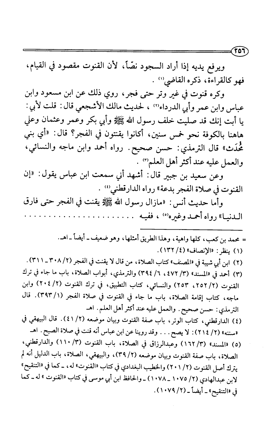 (¬2) ابن أبي شيبة في "المصنف" كتاب الصلاة، من قال لا يقنت في الفجر (2/ 308 - 311).