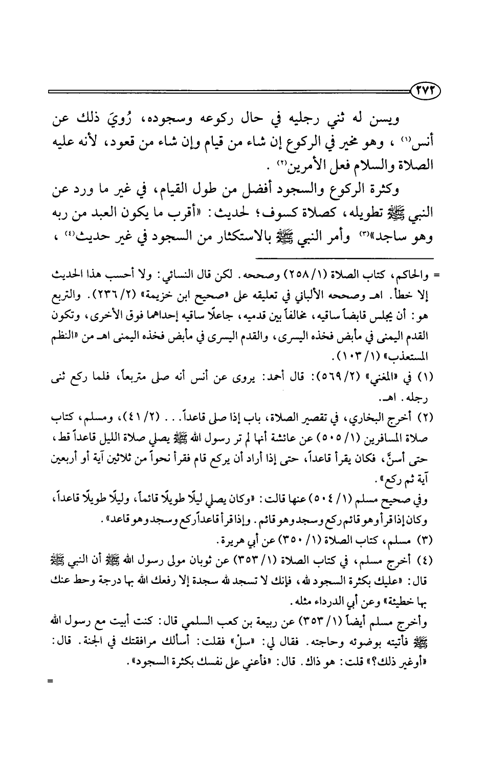 (¬1) في "المغني" (2/ 569): قال أحمد: يروى عن أنس أنه صلى متربعًا، فلما ركع ثنى رجله. اهـ.