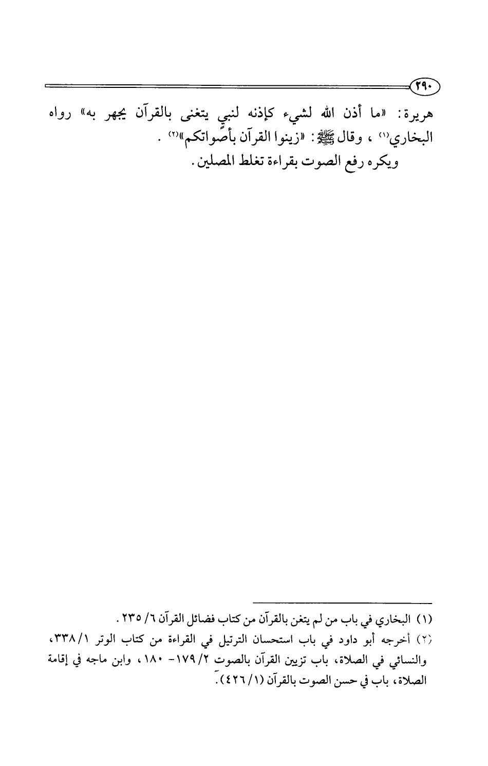 (¬2) أخرجه أبو داود في باب استحسان الترتيل في القراءة من كتاب الوتر 1/ 338، والنسائي في الصلاة، باب تزيين القرآن بالصوت 2/ 179 - 180، وابن ماجه في إقامة الصلاة، باب في حسن الصوت بالقرآن (1/ 426).