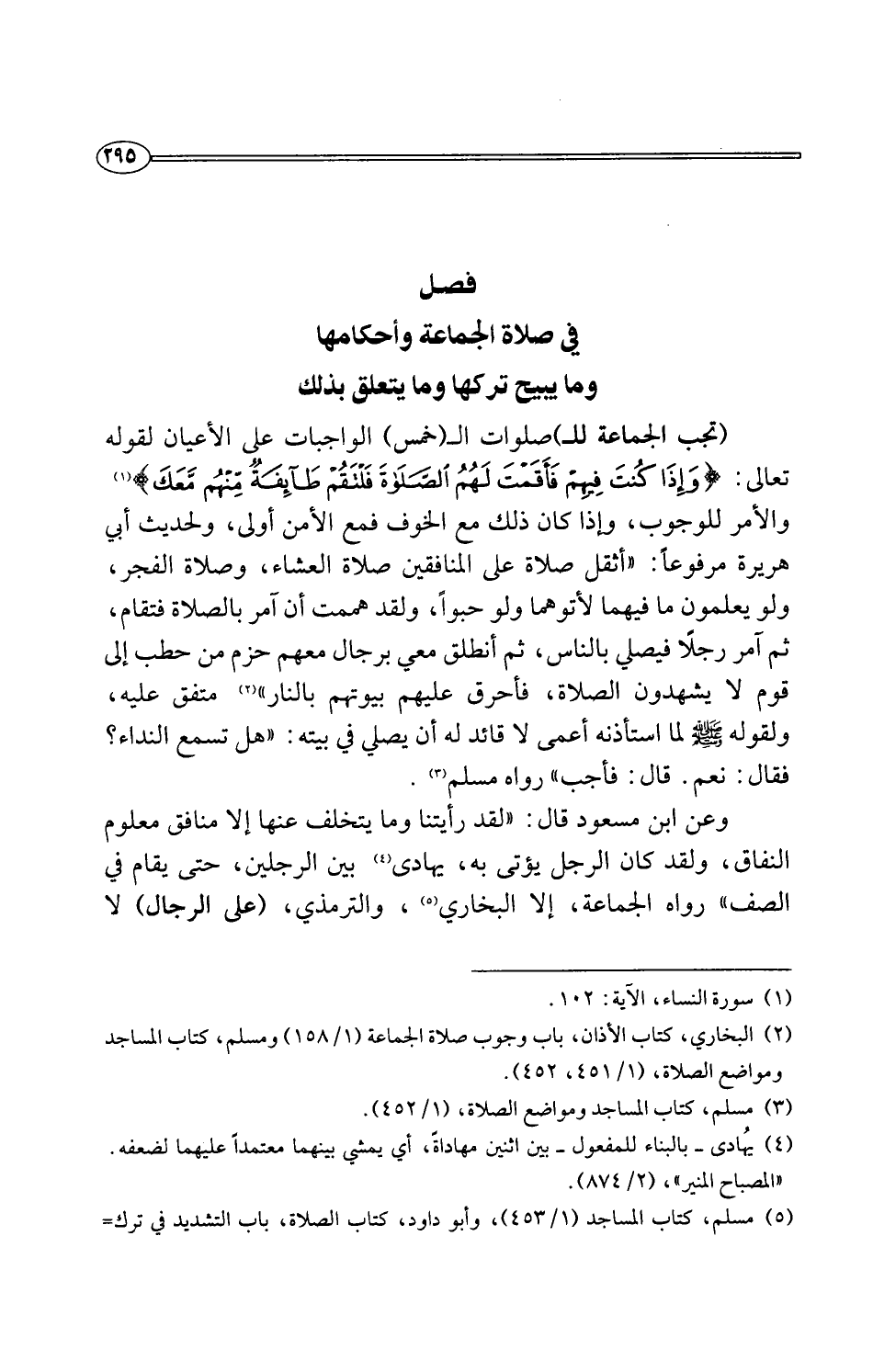 (¬2) البخاري، كتاب الأذان، باب وجوب صلاة الجماعة (1/ 158) ومسلم، كتاب المساجد ومواضع الصلاة، (1/ 451، 452).