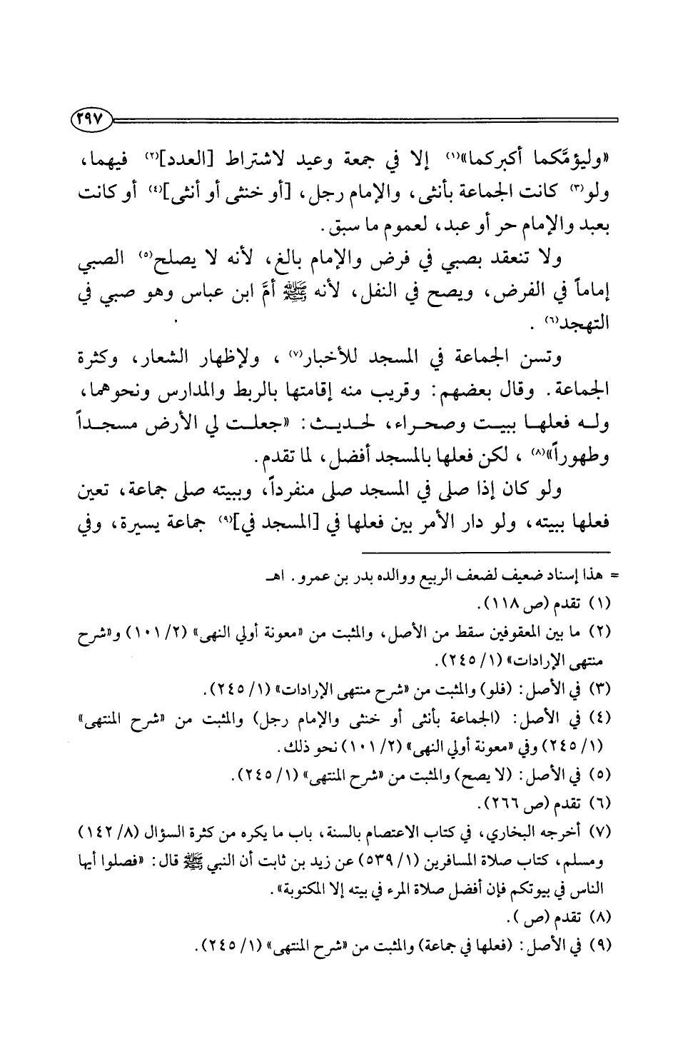 (¬9) في الأصل: (فعلها في جماعة) والمثبت من "شرح المنتهى" (1/ 245).
