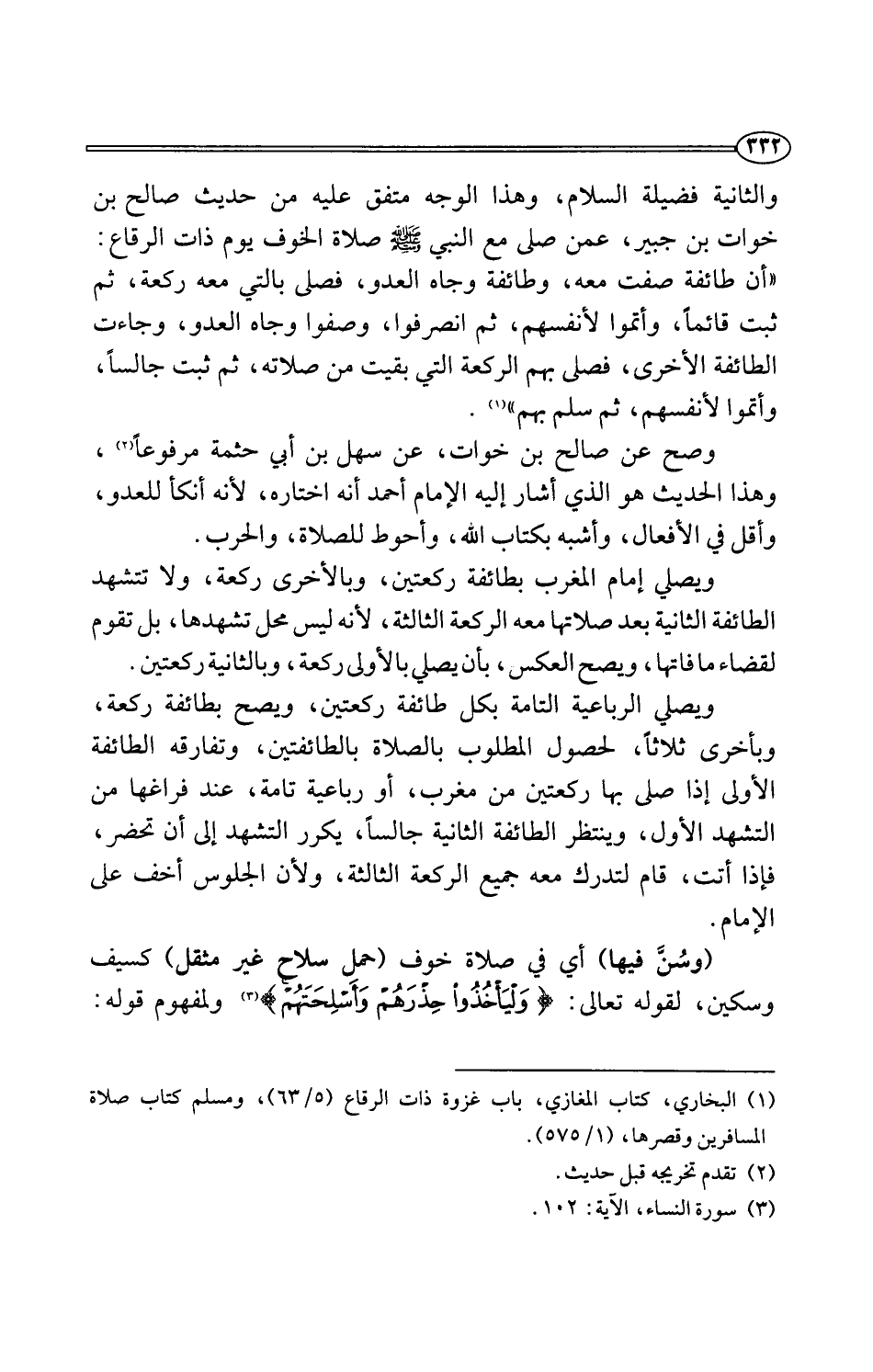 (¬3) سورة النساء، الآية: 102.
