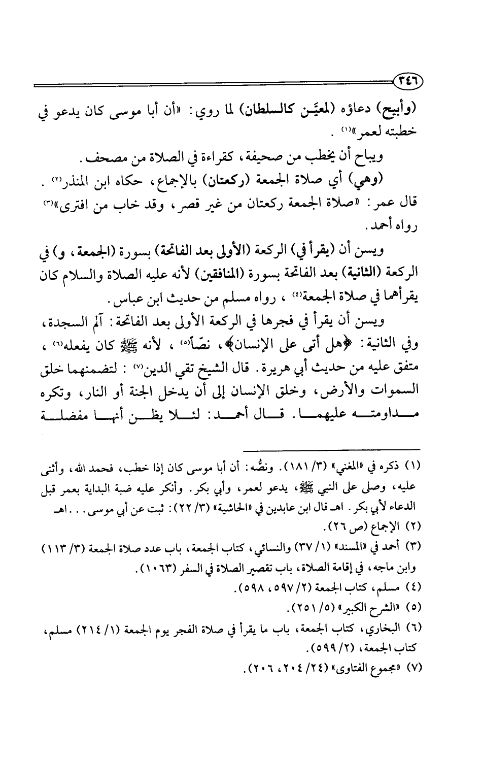 (¬6) البخاري، كتاب الجمعة، باب ما يقرأ في صلاة الفجر يوم الجمعة (1/ 214) مسلم، كتاب الجمعة، (2/ 599).