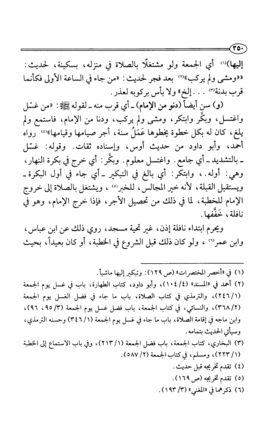 (¬1) في "أخصر المختصرات" (ص 129): وتبكير إليها ماشيًا.