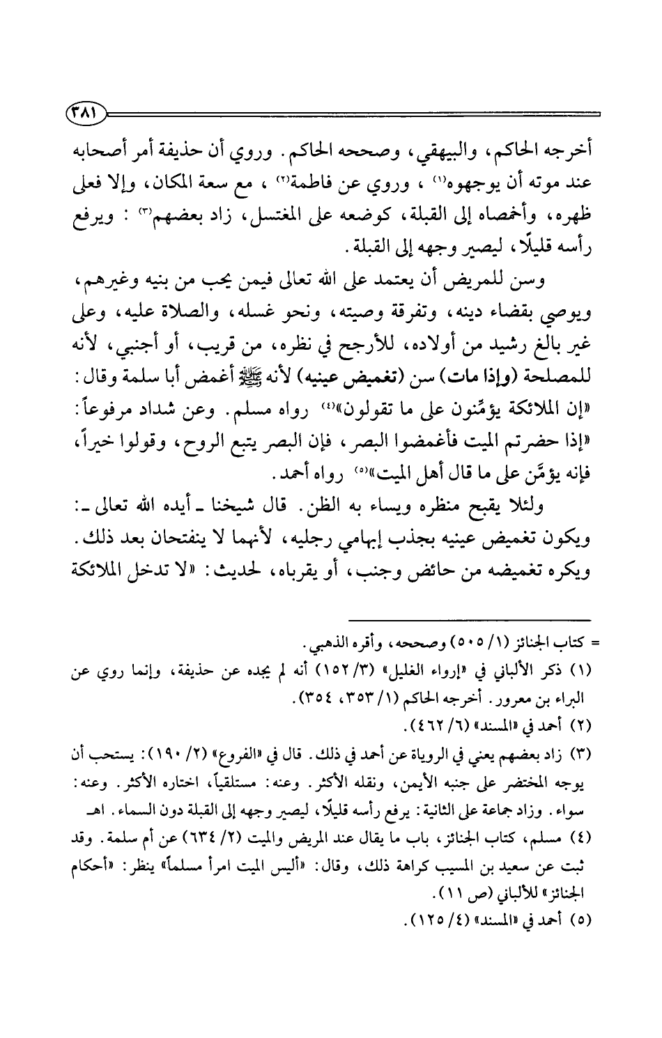 (¬3) زاد بعضهم يعني في الروياة عن أحمد في ذلك. قال في "الفروع" (2/ 190): يستحب أن يوجه المختضر على جنبه الأيمن، ونقله الأكثر. وعنه: مستلقيًا، اختاره الأكثر. وعنه: سواء. وزاد جماعة على الثانية: يرفع رأسه قليلًا، ليصير وجهه إلى القبة دون السماء. اهـ