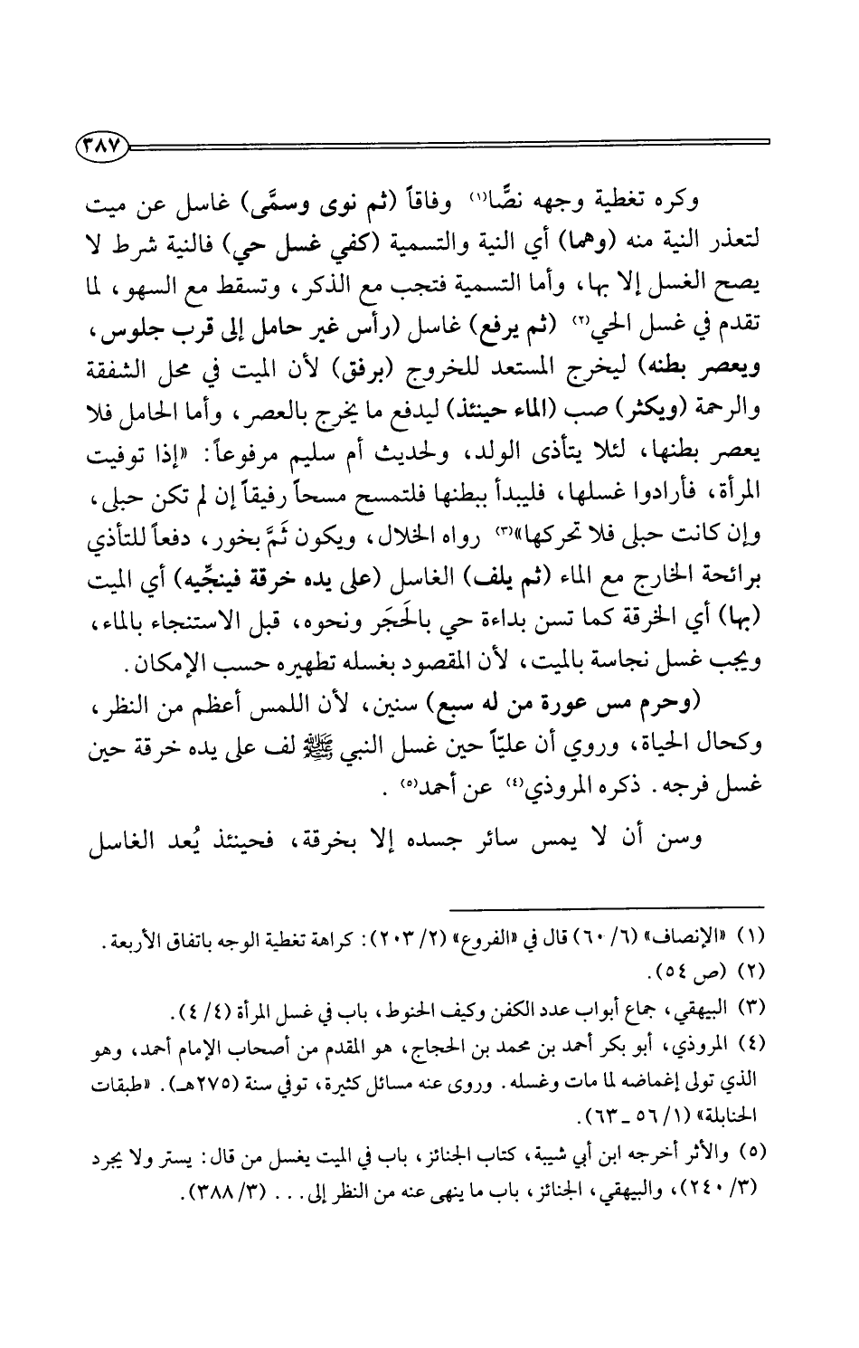 (¬5) والأثر أخرجه ابن أبي شيبة، كتاب الجنائز، باب في الميت يغسل من قال: يستر ولا يجرد (3/ 240)، والبيهقي، الجنائز، باب ما ينهى عنه من النظر إلى. . . (3/ 388).