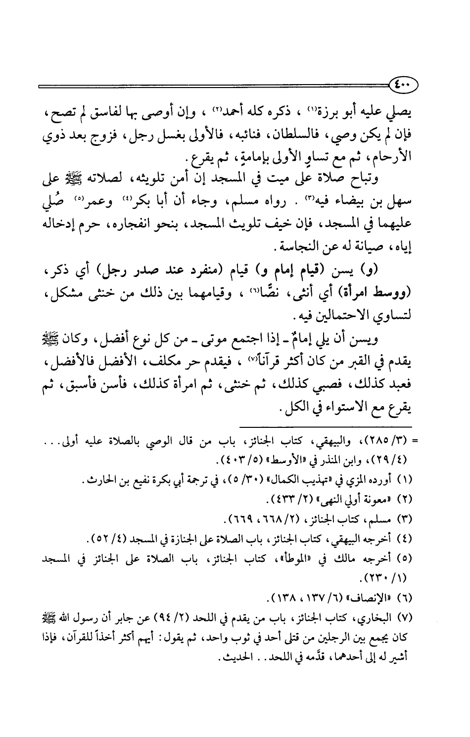 (¬7) البخاري، كتاب الجنائز، باب من يقدم في اللحد (2/ 94) عن جابر أن رسول اللَّه -صلى اللَّه عليه وسلم- كان يجمع بين الرجلين من قتلى أحد في ثوب واحد، ثم يقول: أيهم أكثر أخذًا للقرآن، فإذا أشير له إلى أحدهما، قدَّمه في اللحد. . الحديث.