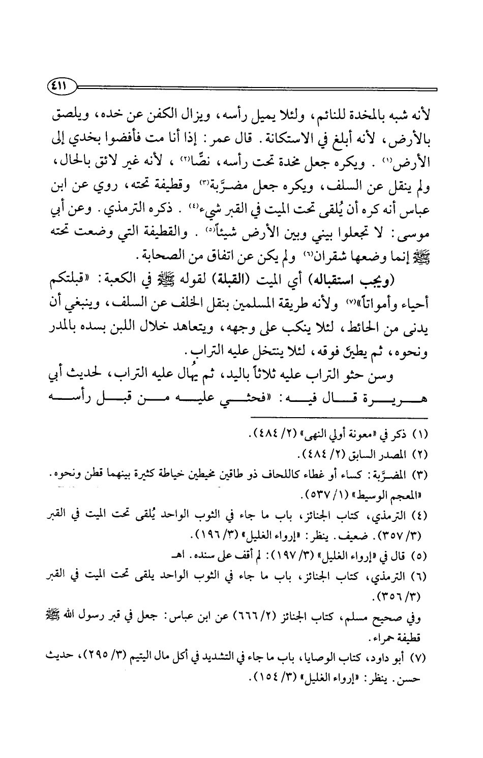 (¬6) الترمذي، كتاب الجنائز، باب ما جاء في الثوب الواحد يلقى تحت الميت في القبر (3/ 356).