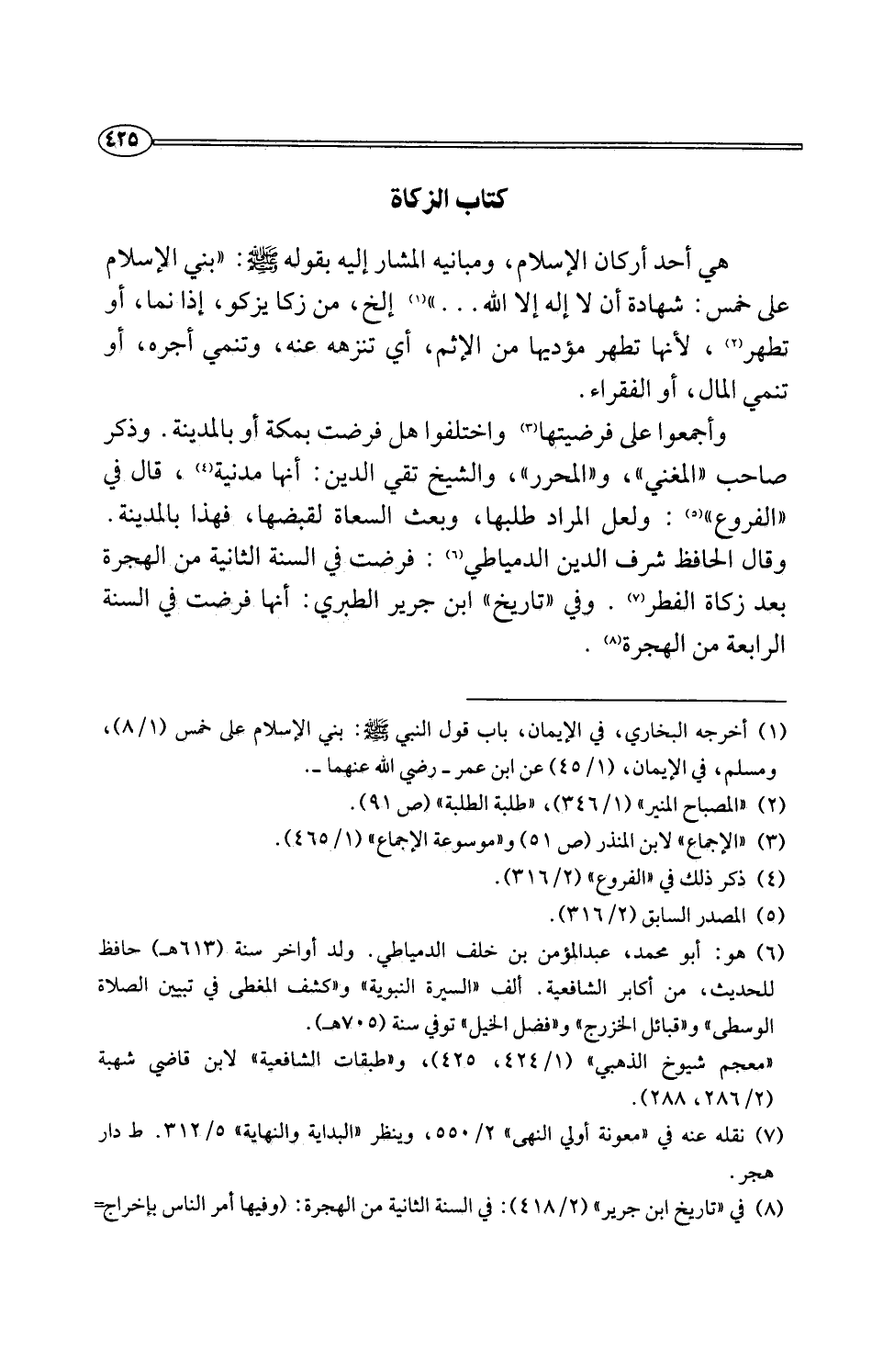 وأجمعوا على فرضيتها (¬3) واختلفوا هل فرضت بمكة أو بالمدينة. وذكر صاحب "المغني"، و"المحرر"، والشيخ تقي الدين: أنها مدنية (¬4)، قال في "الفروع" (¬5): ولعل المراد طلبها، وبعث السعاة لقبضها، فهذا بالمدينة. وقال الحافظ شرف الدين الدمياطي (¬6): فرضت في السنة الثانية من الهجرة بعد زكاة الفطر (¬7). وفي "تاريخ" ابن جرير الطبري: أنها فرضت في السنة الرابعة من الهجرة (¬8).